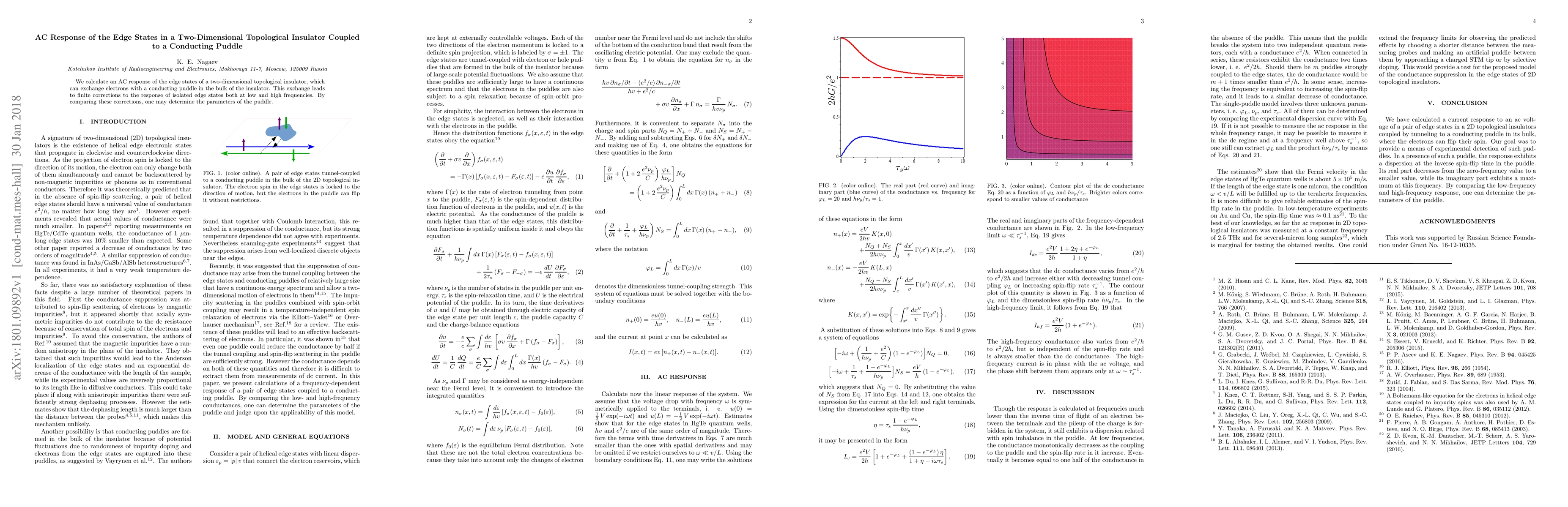 This paper investigates the AC response of edge states in a two-dimensional topological insulator interacting with a conducting puddle, revealing finite frequency corrections that can be used to determine the puddle's parameters. The study highlights the influence of bulk-edge interactions on the topological insulator's edge states.