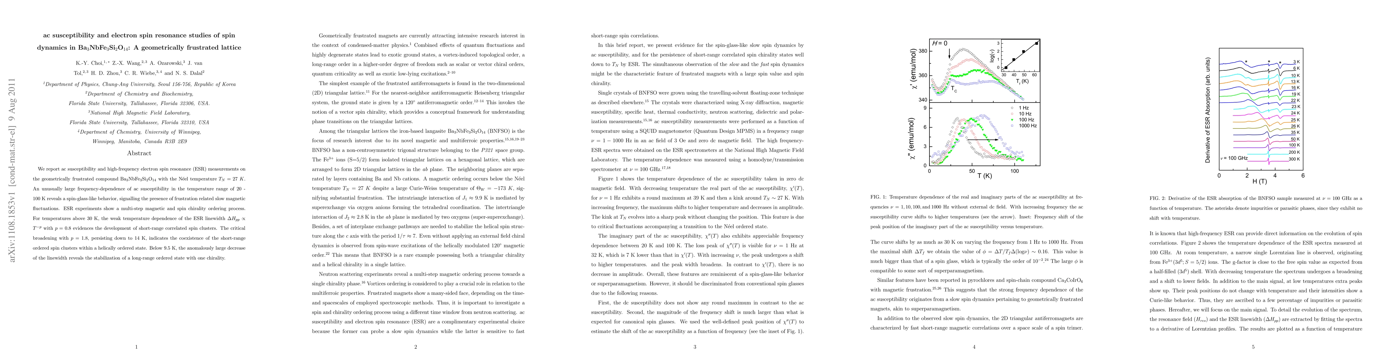 Researchers investigated a geometrically frustrated compound Ba$_3$NbFe$_3$Si$_2$O$_{14}$ using AC susceptibility and electron spin resonance measurements, revealing spin-glass-like behavior and multi-step magnetic ordering processes, with the system exhibiting different types of correlated spin clusters at various temperatures.