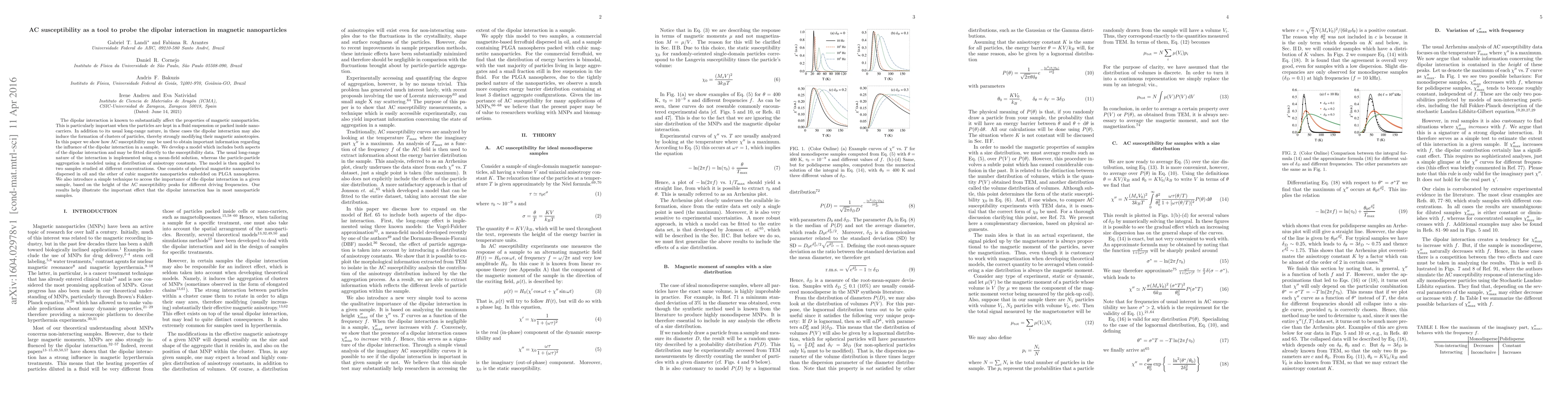 The dipolar interaction is known to substantially affect the properties of magnetic nanoparticles. This is particularly important when the particles are kept in a fluid suspension or packed inside nano-carriers. In addition to its usual long-range nature, in these cases the dipolar interaction may also induce the formation of clusters of particles, thereby strongly modifying their magnetic anisotropies. In this paper we show how AC susceptibility may be used to obtain important information regarding the influence of the dipolar interaction in a sample. We develop a model which includes both aspects of the dipolar interaction and may be fitted directly to the susceptibility data. The usual long-range nature of the interaction is implemented using a mean-field solution, whereas the particle-particle aggregation is modeled using a distribution of anisotropy constants. The model is then applied to two samples studied at different concentrations. One consists of spherical magnetite nanoparticles dispersed in oil and the other of cubic magnetite nanoparticles embedded on PLGA nanospheres. We also introduce a simple technique to access the importance of the dipolar interaction in a given sample, based on the height of the AC susceptibility peaks for different driving frequencies. Our results help illustrate the important effect that the dipolar interaction has in most nanoparticle samples.