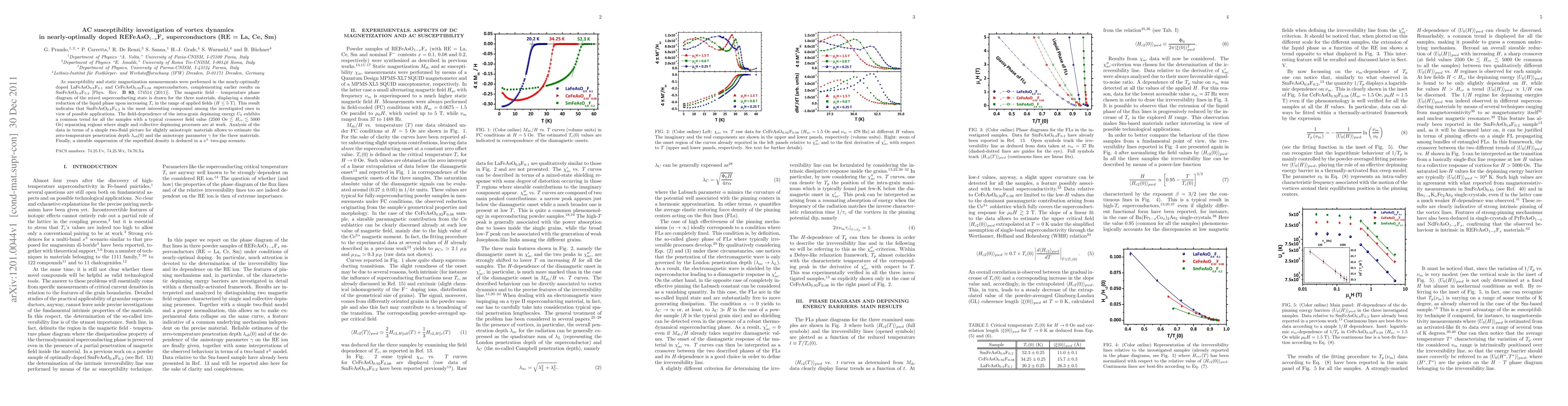 Researchers investigated AC susceptibility and static magnetization in nearly-optimally doped REFeAsO1-xFx superconductors to study vortex dynamics, finding a common trend for intra-grain depinning energy and a sizeable suppression of superfluid density in a two-gap scenario.