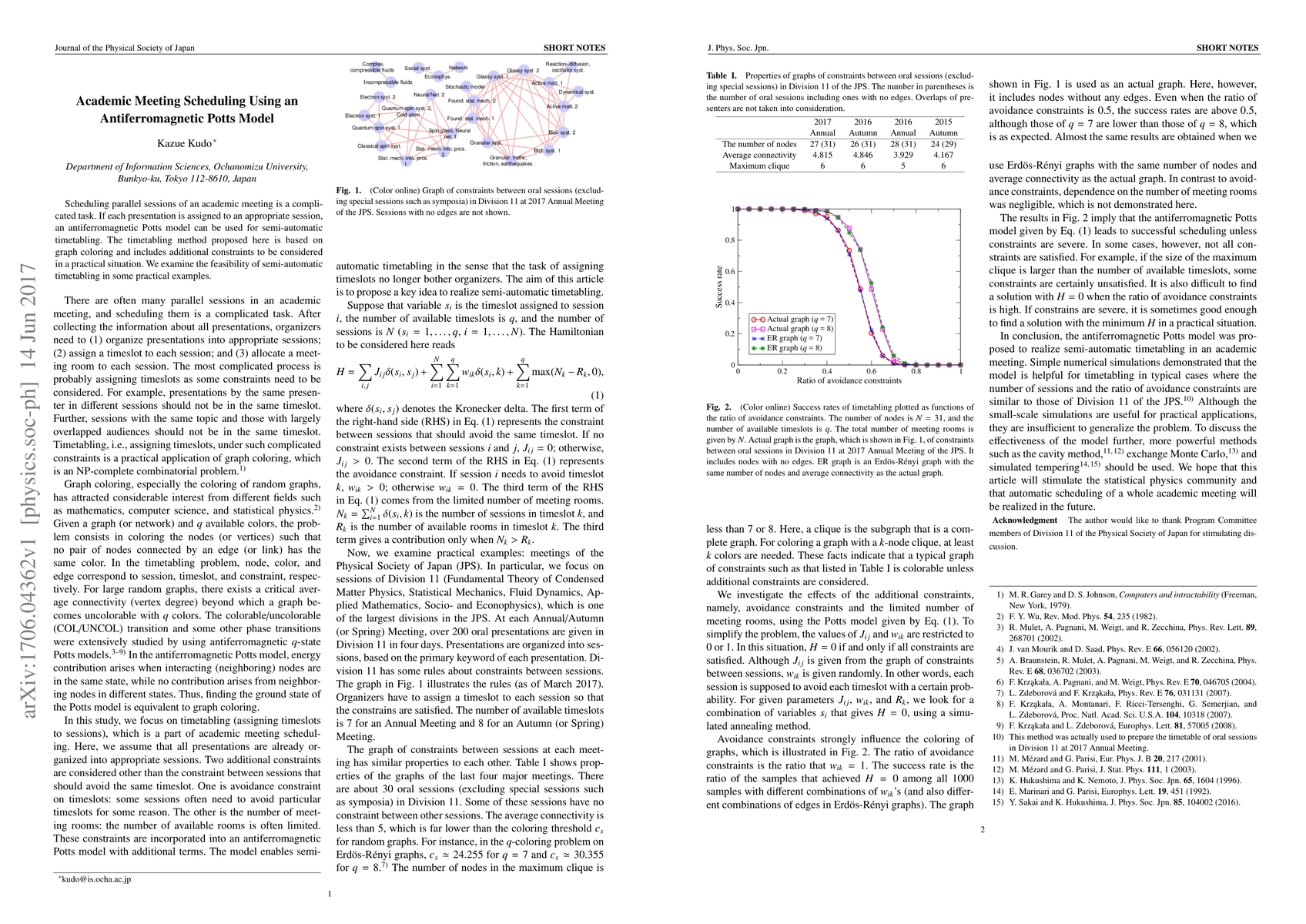 Scheduling parallel sessions of an academic meeting is a complicated task. If each presentation is assigned to an appropriate session, an antiferromagnetic Potts model can be used for semi-automatic timetabling. The timetabling method proposed here is based on graph coloring and includes additional constraints to be considered in a practical situation. We examine the feasibility of semi-automatic timetabling in some practical examples.