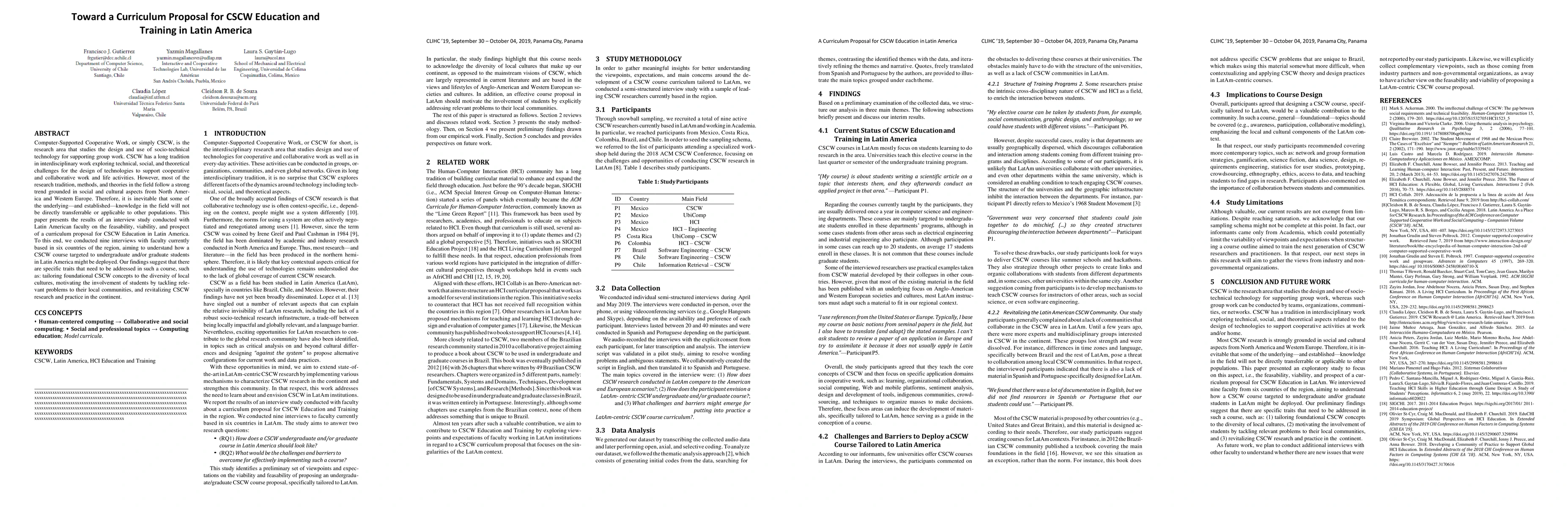 This paper explores the feasibility of developing a CSCW education curriculum in Latin America, based on interviews with faculty across six countries. The findings highlight the need to adapt CSCW concepts to local cultural contexts, engage students with community-relevant issues, and foster renewed CSCW research and practice in the region.