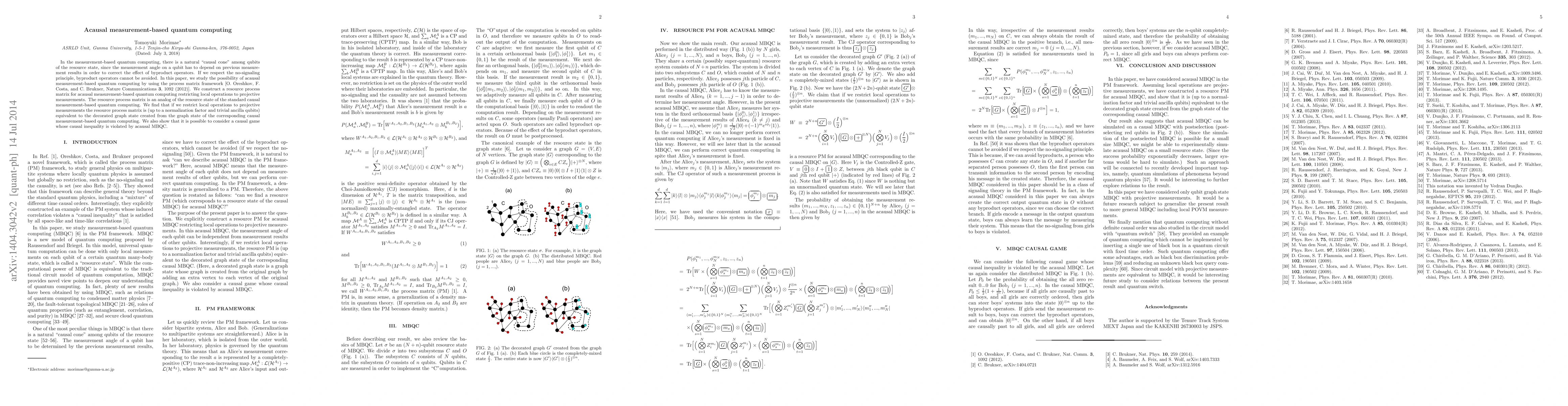 This paper explores the feasibility of acausal measurement-based quantum computing using the process matrix framework. It constructs a resource process matrix analogous to the resource state in causal measurement-based quantum computing, finding it equivalent to a decorated graph state.