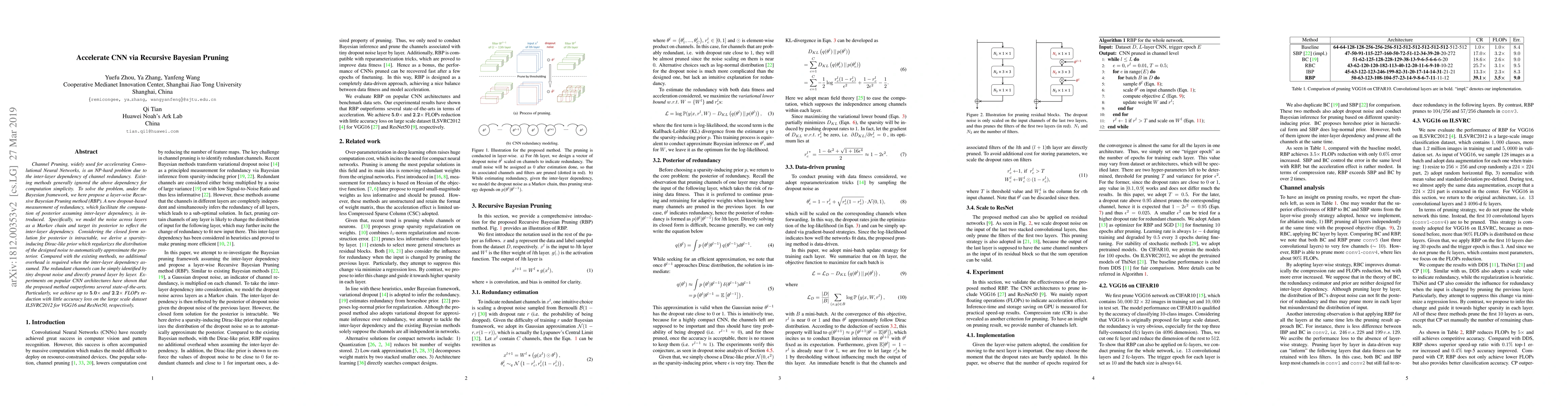 A new pruning method called Recursive Bayesian Pruning is proposed to accelerate CNNs by modeling inter-layer dependency and achieving up to 5x FLOPs reduction with minimal accuracy loss.