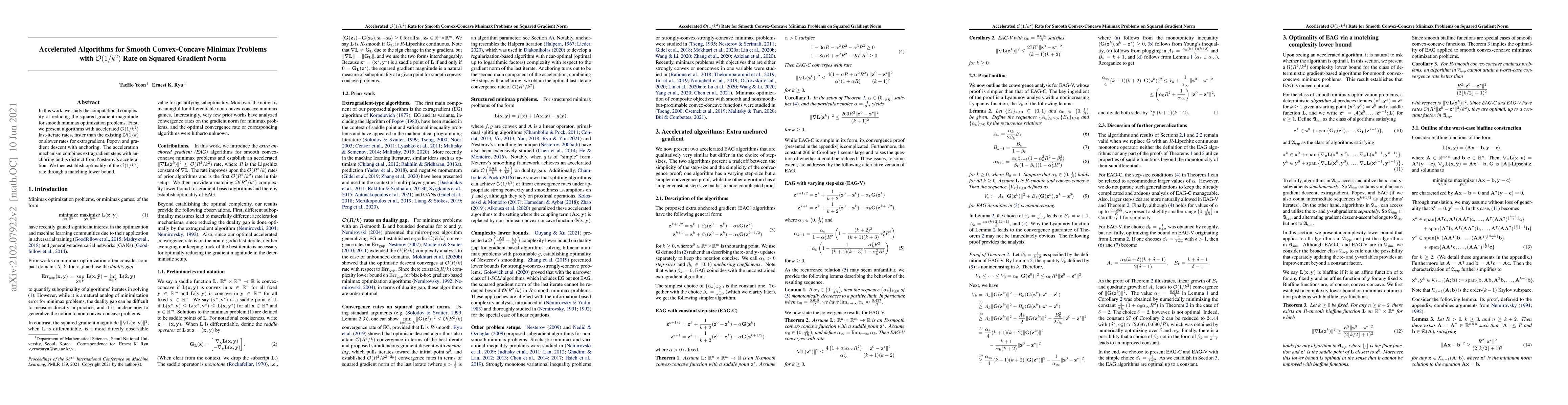 Researchers have developed algorithms that solve smooth convex-concave minimax problems at an accelerated rate of O(1/k^2) on squared gradient norm, outperforming existing methods.