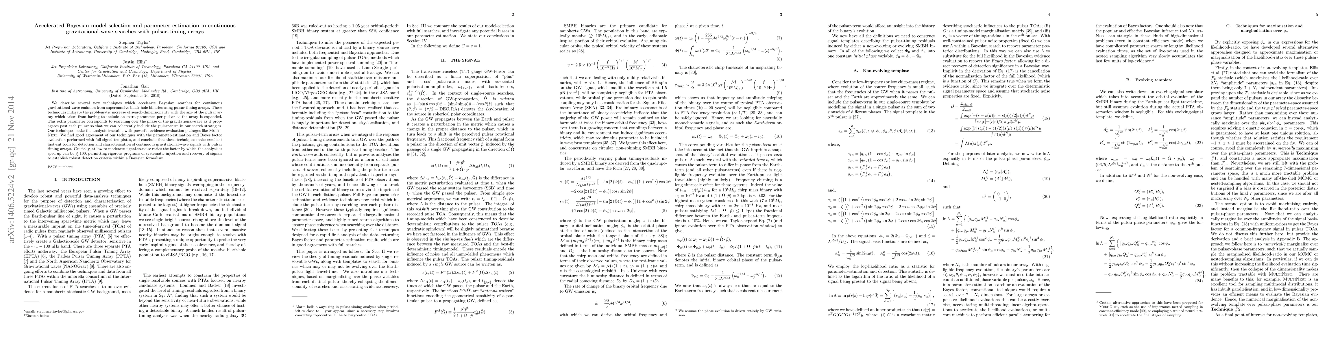 We describe several new techniques which accelerate Bayesian searches for continuous gravitational-wave emission from supermassive black-hole binaries using pulsar timing arrays. These techniques mitigate the problematic increase of search-dimensionality with the size of the pulsar array which arises from having to include an extra parameter per pulsar as the array is expanded. This extra parameter corresponds to searching over the phase of the gravitational-wave as it propagates past each pulsar so that we can coherently include the pulsar-term in our search strategies. Our techniques make the analysis tractable with powerful evidence-evaluation packages like MultiNest. We find good agreement of our techniques with the parameter-estimation and Bayes factor evaluation performed with full signal templates, and conclude that these techniques make excellent first-cut tools for detection and characterisation of continuous gravitational-wave signals with pulsar timing arrays. Crucially, at low to moderate signal-to-noise ratios the factor by which the analysis is sped up can be > 100, permitting rigorous programs of systematic injection and recovery of signals to establish robust detection criteria within a Bayesian formalism.