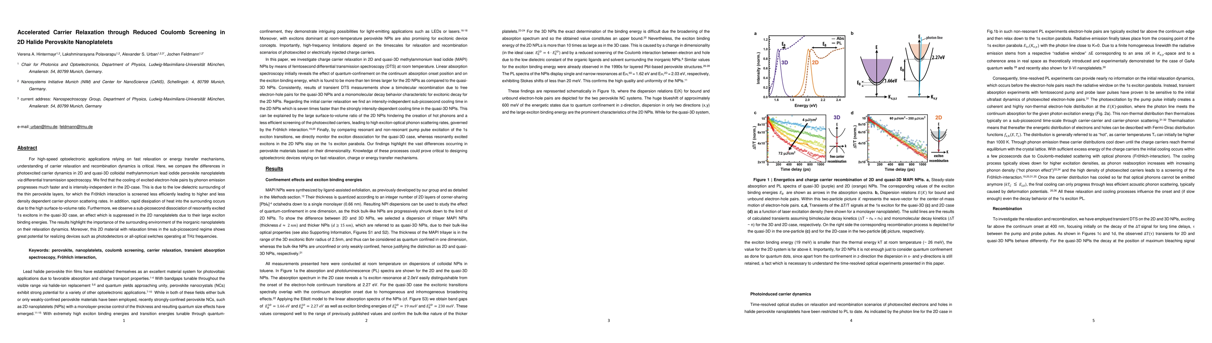 This study investigates the accelerated carrier relaxation in 2D halide perovskite nanoplatelets compared to quasi-3D counterparts, revealing faster phonon emission cooling and reduced Coulomb screening due to the low dielectric environment. The findings suggest potential for high-speed optoelectronic devices like THz photodetectors.