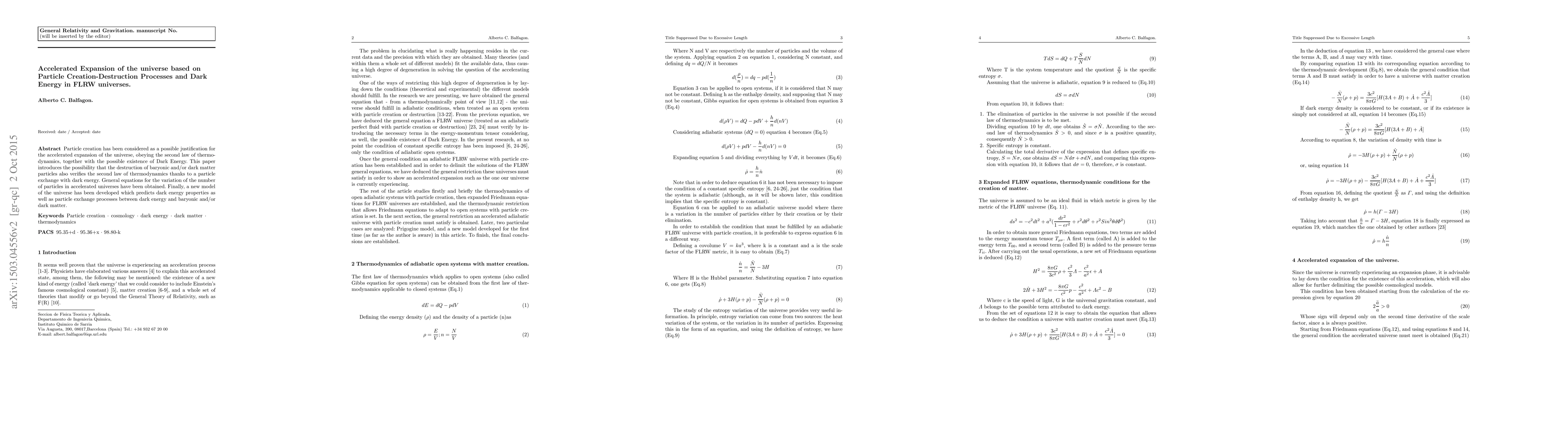 This paper explores the accelerated expansion of the universe through particle creation-destruction processes and dark energy in FLRW universes, proposing a new model that incorporates particle exchange with dark energy to satisfy the second law of thermodynamics. The study develops general equations for particle number variation and predicts dark energy properties.