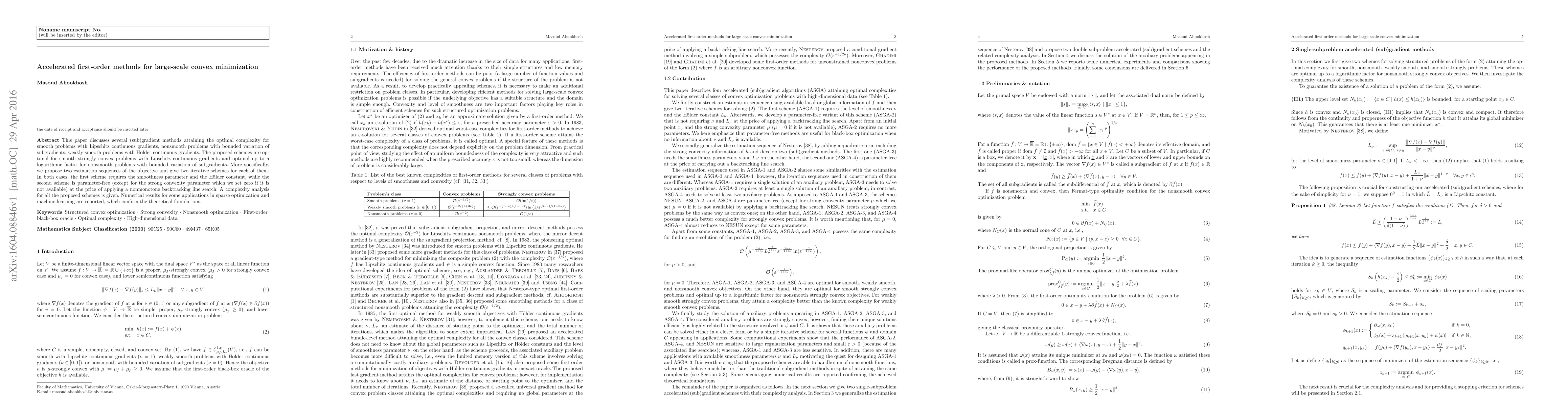 This paper discusses several (sub)gradient methods attaining the optimal complexity for smooth problems with Lipschitz continuous gradients, nonsmooth problems with bounded variation of subgradients, weakly smooth problems with H\"older continuous gradients. The proposed schemes are optimal for smooth strongly convex problems with Lipschitz continuous gradients and optimal up to a logarithmic factor for nonsmooth problems with bounded variation of subgradients. More specifically, we propose two estimation sequences of the objective and give two iterative schemes for each of them. In both cases, the first scheme requires the smoothness parameter and the H\"older constant, while the second scheme is parameter-free (except for the strong convexity parameter which we set zero if it is not available) at the price of applying a nonmonotone backtracking line search. A complexity analysis for all the proposed schemes is given. Numerical results for some applications in sparse optimization and machine learning are reported, which confirm the theoretical foundations.