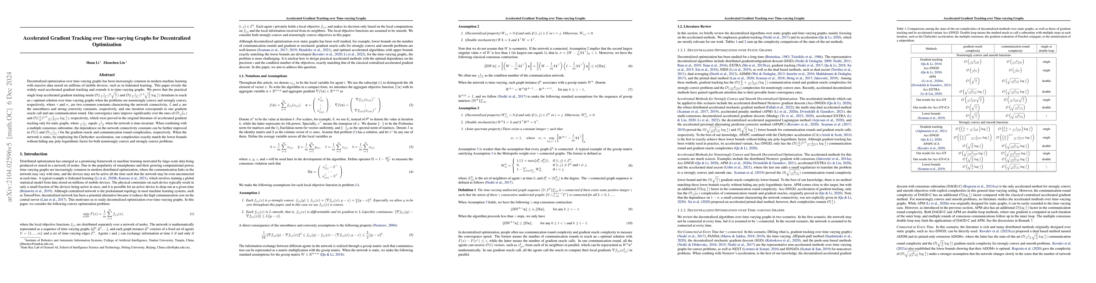 This paper extends accelerated gradient tracking to decentralized optimization over time-varying graphs, achieving improved complexities over static graph methods. The results show significant reductions in computational and communication complexities, especially when combined with a multiple consensus subroutine.
