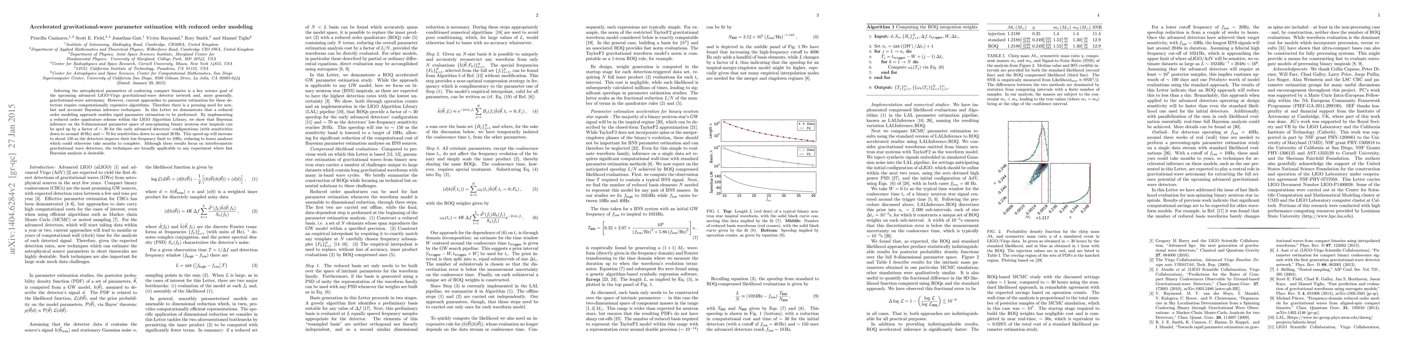 Inferring the astrophysical parameters of coalescing compact binaries is a key science goal of the upcoming advanced LIGO-Virgo gravitational-wave detector network and, more generally, gravitational-wave astronomy. However, current parameter estimation approaches for such scenarios can lead to computationally intractable problems in practice. Therefore there is a pressing need for new, fast and accurate Bayesian inference techniques. In this letter we demonstrate that a reduced order modeling approach enables rapid parameter estimation studies. By implementing a reduced order quadrature scheme within the LIGO Algorithm Library, we show that Bayesian inference on the 9-dimensional parameter space of non-spinning binary neutron star inspirals can be sped up by a factor of 30 for the early advanced detectors' configurations. This speed-up will increase to about $150$ as the detectors improve their low-frequency limit to 10Hz, reducing to hours analyses which would otherwise take months to complete. Although these results focus on gravitational detectors, the techniques are broadly applicable to any experiment where fast Bayesian analysis is desirable.