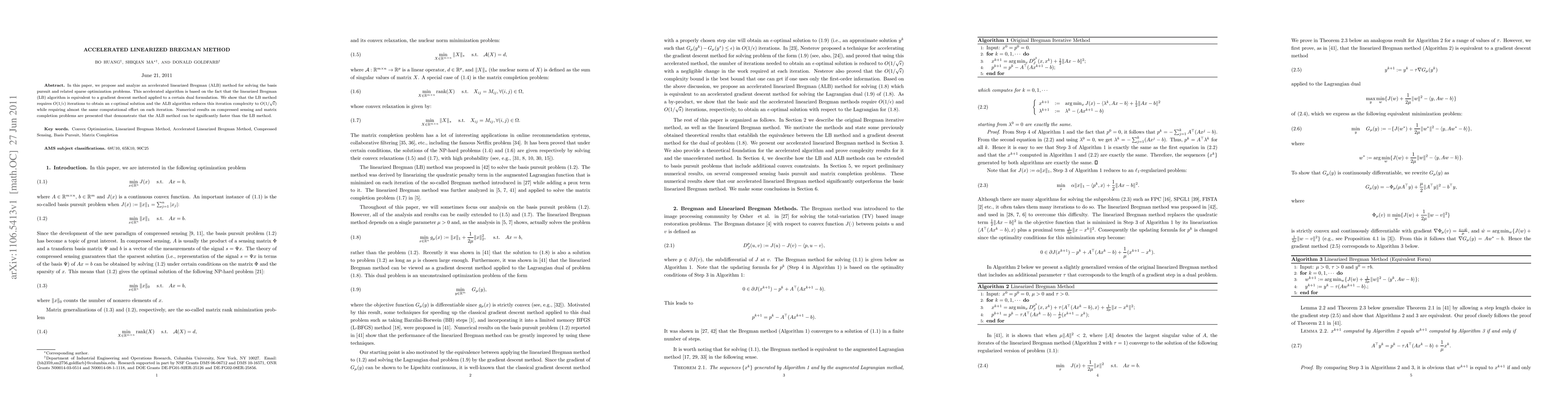 The paper proposes an accelerated linearized Bregman (ALB) method for sparse optimization, reducing iteration complexity from $O(1/\epsilon)$ to $O(1/\sqrt{\epsilon})$ compared to the standard linearized Bregman (LB) method, while maintaining similar computational effort per iteration. Numerical results show ALB's superior performance in compressed sensing and matrix completion tasks.