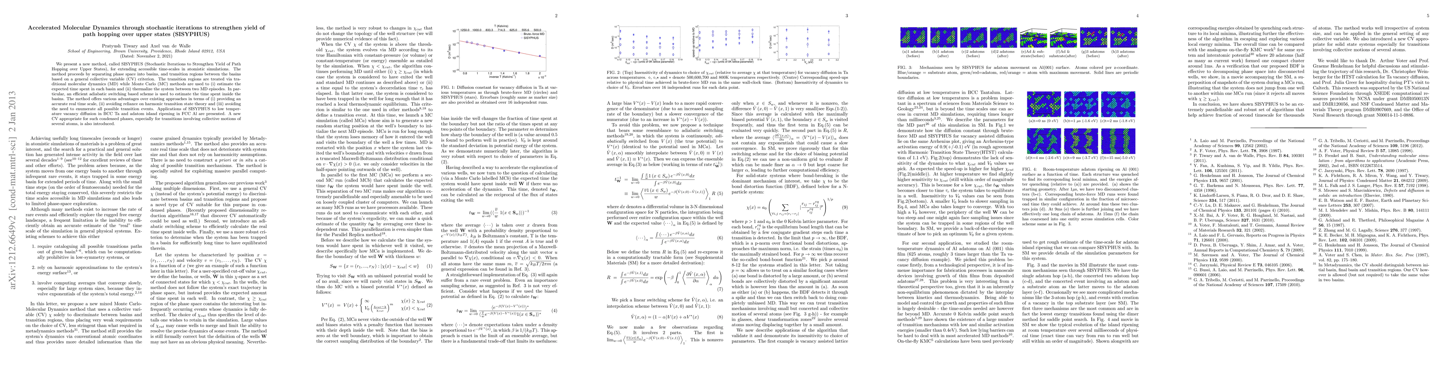 We present a new method, called SISYPHUS (Stochastic Iterations to Strengthen Yield of Path Hopping over Upper States), for extending accessible time-scales in atomistic simulations. The method proceeds by separating phase space into basins, and transition regions between the basins based on a general collective variable (CV) criterion. The transition regions are treated via traditional molecular dynamics (MD) while Monte Carlo (MC) methods are used to (i) estimate the expected time spent in each basin and (ii) thermalize the system between two MD episodes. In particular, an efficient adiabatic switching based scheme is used to estimate the time spent inside the basins. The method offers various advantages over existing approaches in terms of (i) providing an accurate real time scale, (ii) avoiding reliance on harmonic transition state theory and (iii) avoiding the need to enumerate all possible transition events. Applications of SISYPHUS to low temperature vacancy diffusion in BCC Ta and adatom island ripening in FCC Al are presented. A new CV appropriate for such condensed phases, especially for transitions involving collective motions of several atoms, is also introduced.
