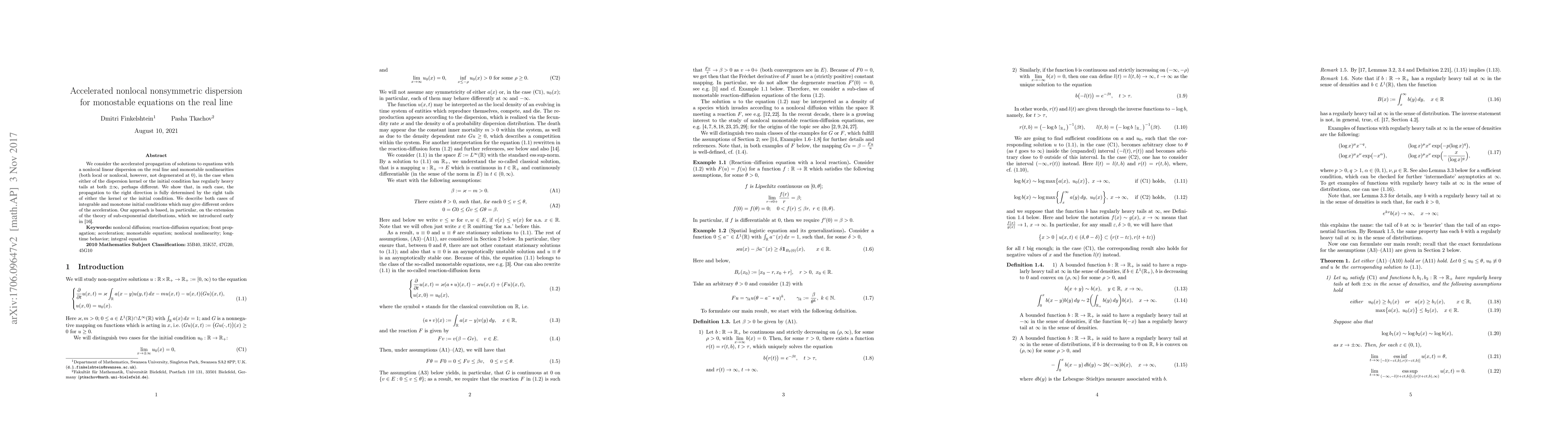 We consider the accelerated propagation of solutions to equations with a nonlocal linear dispersion on the real line and monostable nonlinearities (both local or nonlocal, however, not degenerated at $0$), in the case when either of the dispersion kernel or the initial condition has regularly heavy tails at both $\pm\infty$, perhaps different. We show that, in such case, the propagation to the right direction is fully determined by the right tails of either the kernel or the initial condition. We describe both cases of integrable and monotone initial conditions which may give different orders of the acceleration. Our approach is based, in particular, on the extension of the theory of sub-exponential distributions, which we introduced early in arXiv:1704.05829 [math.PR].