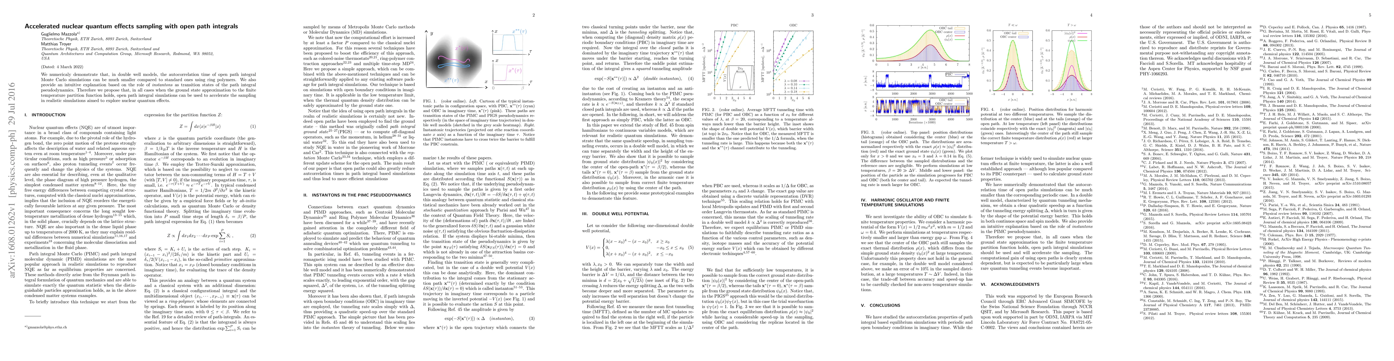 This paper demonstrates that open path integral Monte Carlo simulations using ring polymers can significantly reduce autocorrelation time in double well models compared to standard methods. The authors propose that this approach can accelerate sampling in simulations exploring nuclear quantum effects when the ground state approximation holds.