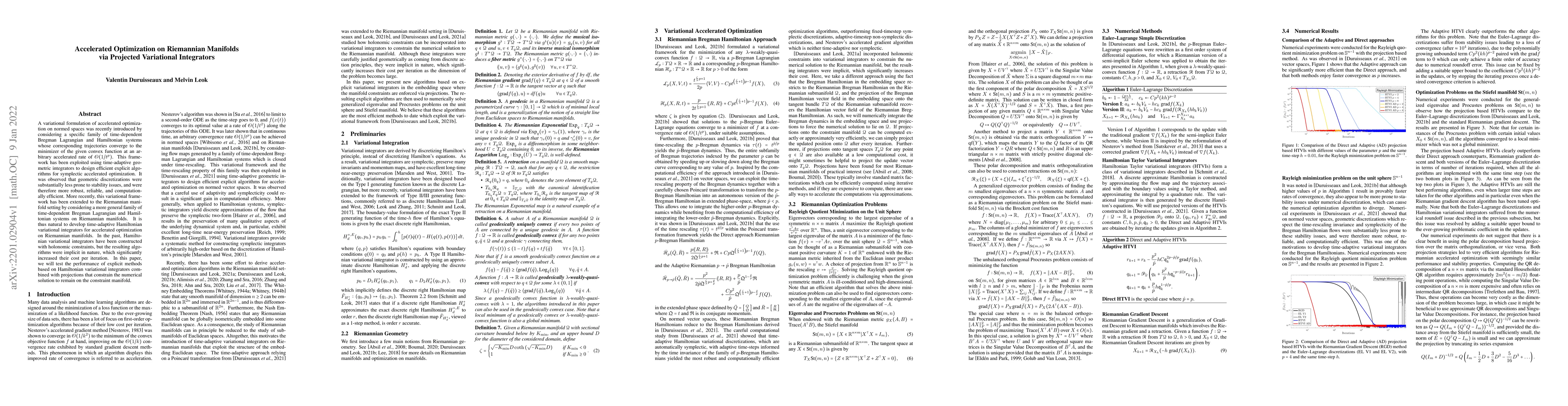 This paper proposes explicit, computationally efficient algorithms for accelerated optimization on Riemannian manifolds using projected Hamiltonian variational integrators. These methods aim to enhance robustness and computational efficiency compared to implicit counterparts, leveraging the variational framework for robust convergence to the minimizer of convex functions.