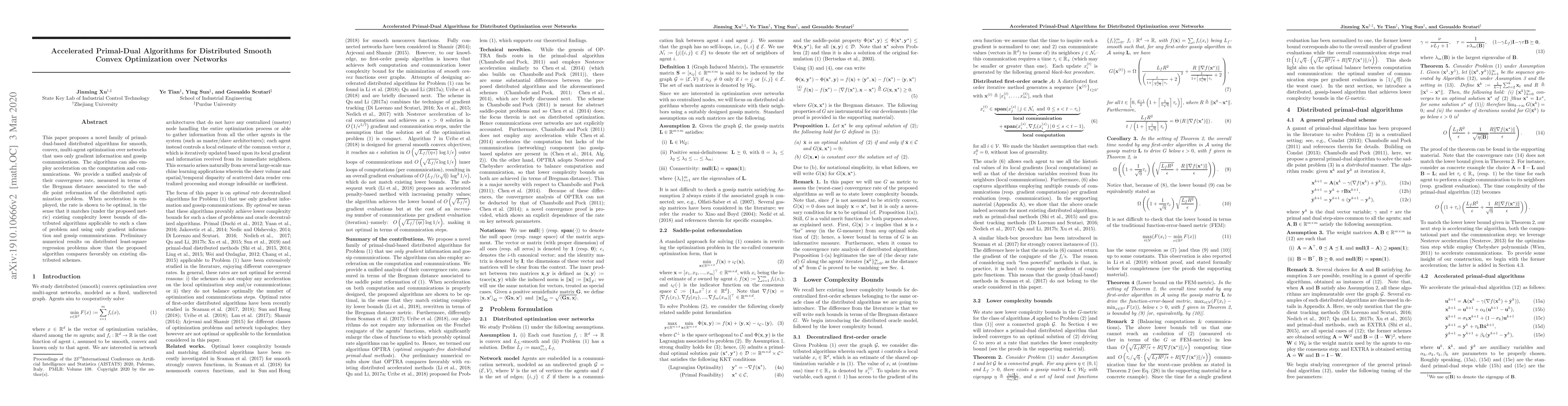 This paper introduces accelerated primal-dual algorithms for distributed smooth convex optimization over networks, achieving optimal convergence rates using gradient information and gossip communication. Preliminary results indicate superior performance compared to existing distributed schemes.