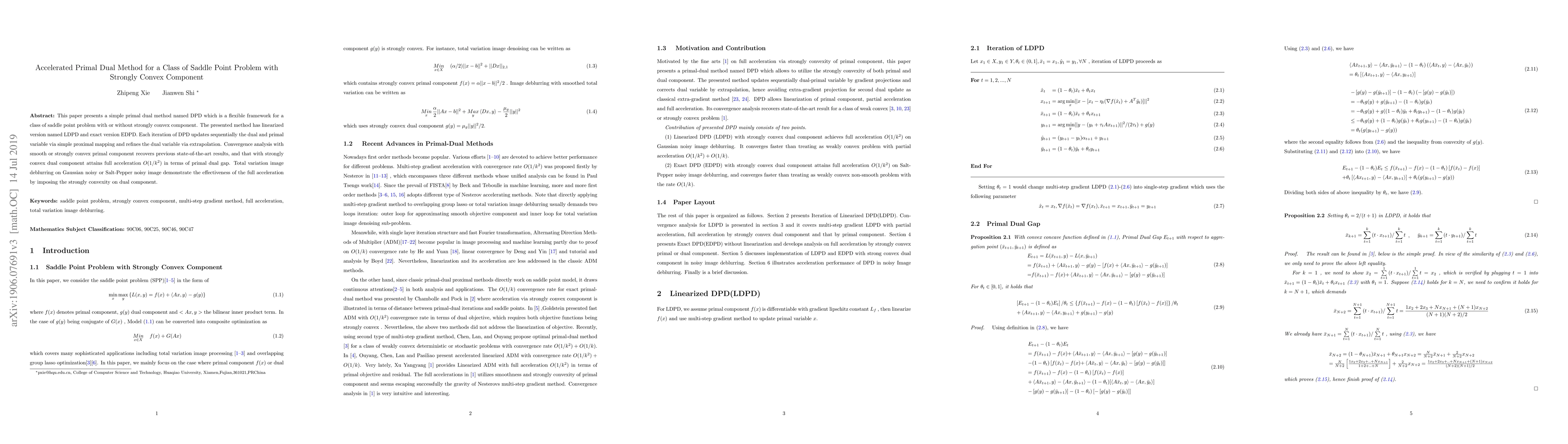A new method called DPD accelerates a class of saddle point problems with strongly convex components, achieving $O(1/k^2)$ convergence rate, and is demonstrated on image deblurring tasks.
