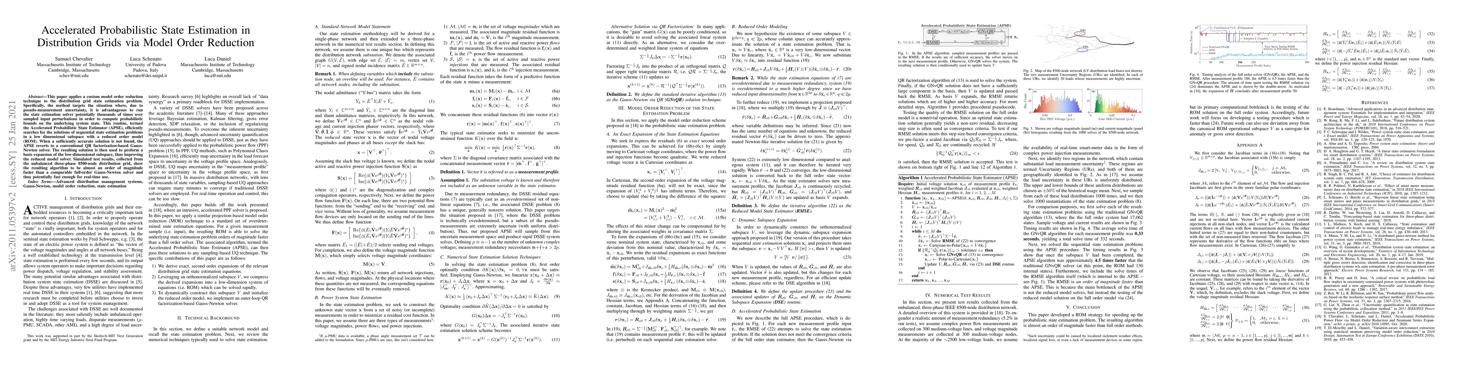 This paper applies a custom model order reduction technique to the distribution grid state estimation problem. Specifically, the method targets the situation where, due to pseudo-measurement uncertainty, it is advantageous to run the state estimation solver potentially thousands of times over sampled input perturbations in order to compute probabilistic bounds on the underlying system state. This routine, termed the Accelerated Probabilistic State Estimator (APSE), efficiently searches for the solutions of sequential state estimation problems in a low dimensional subspace with a reduced order model (ROM). When a sufficiently accurate solution is not found, the APSE reverts to a conventional QR factorization-based Gauss-Newton solver. It then uses the resulting solution to preform a simple basis expansion of the low-dimensional subspace, thus improving the reduced model solver. Simulated test results, collected from the unbalanced three-phase 8500-node distribution grid, show the resulting algorithm to be almost an order of magnitude faster than a comparable full-order Gauss-Newton solver and thus potentially fast enough for real-time use.