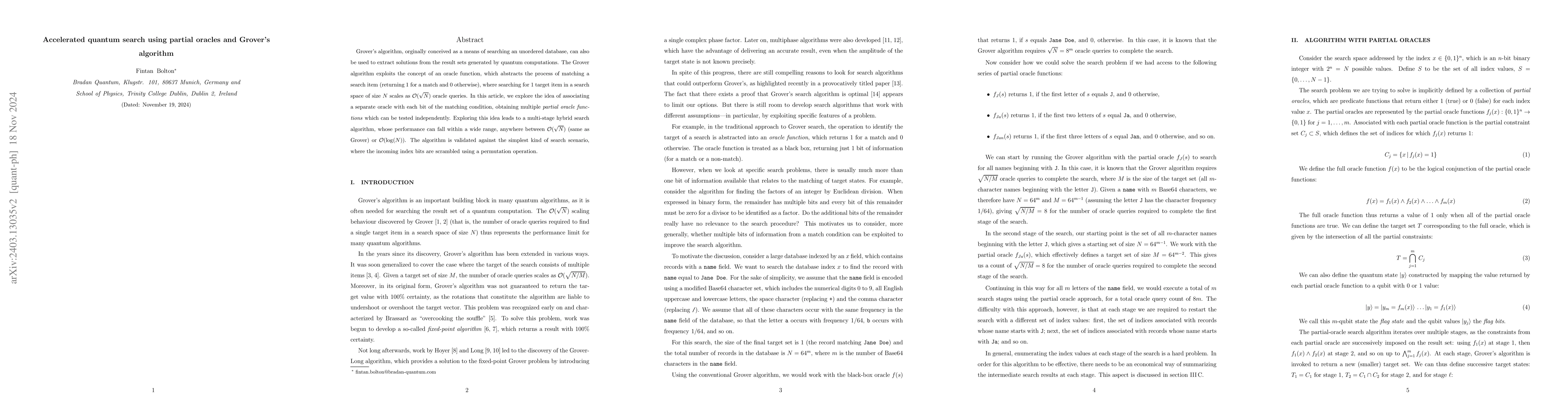 Grover's algorithm, orginally conceived as a means of searching an unordered database, can also be used as a technique for extracting solutions from the result sets generated by quantum computations. The algorithm exploits the concept of an oracle function, which abstracts the process of matching a search item (returning 1 for a match and 0 otherwise). This black-box approach hides the details of a search problem and works with the assumption that the items in the search space are completely unordered. In this case, searching for 1 target item in a search space of size $N$ scales as $\mathcal{O}(\sqrt{N})$ oracle queries (or $\mathcal{O}(\sqrt{N/M})$ oracle queries for $M$ target items in a search space of size $N$). Hidden inside the typical black-box oracle, however, the process of matching an item usually involves matching multiple data bits. In this article, we explore the idea of associating a separate oracle with each bit of the matching condition, obtaining multiple partial oracle functions which can be tested independently. Exploring this idea leads to a multi-stage hybrid search algorithm, whose performance can fall within a wide range, anywhere between $\mathcal{O}(\sqrt{N})$ (same as Grover) or $\mathcal{O}(\log(N))$ (exponentially faster). Apparently, the search acceleration works by dynamically discovering order in the search space, where the order consists of correlations between the partial oracle functions and the search index. This new algorithm is validated against the simplest kind of search scenario.
