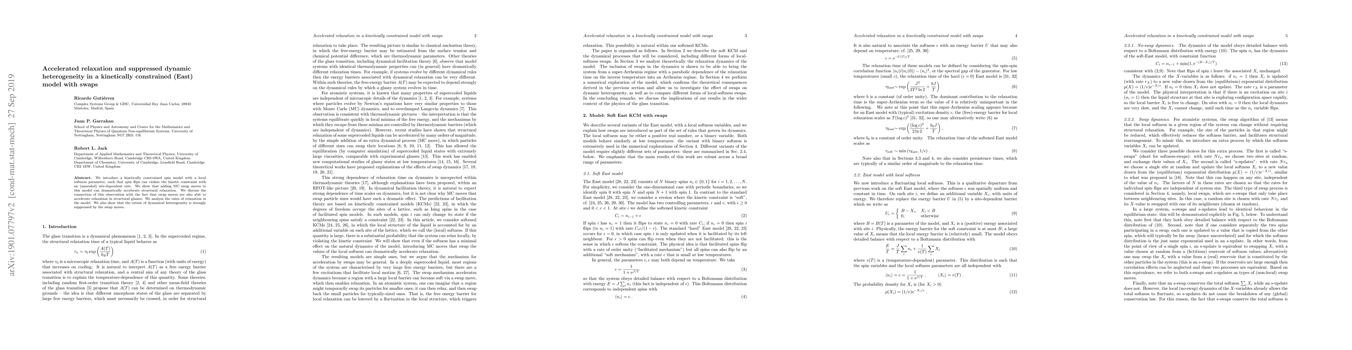 This paper introduces a kinetically constrained spin model with swap moves that significantly accelerate structural relaxation and suppress dynamic heterogeneity, mirroring the effects observed in structural glasses. The study analyzes the relaxation rates and the impact of swap moves on the kinetic constraints.