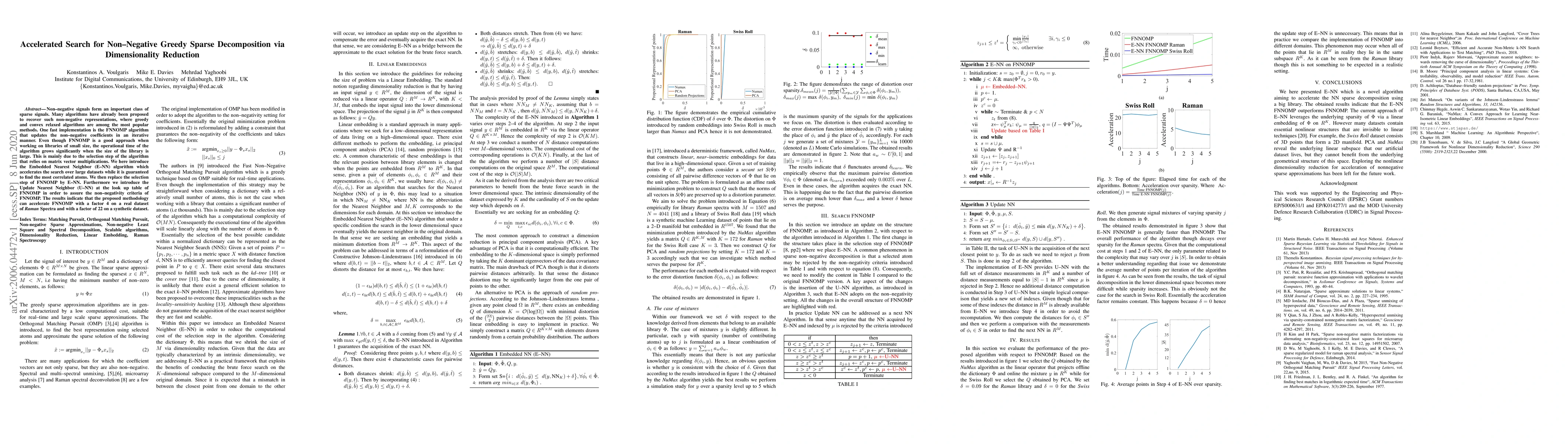 Non-negative signals form an important class of sparse signals. Many algorithms have already beenproposed to recover such non-negative representations, where greedy and convex relaxed algorithms are among the most popular methods. One fast implementation is the FNNOMP algorithm that updates the non-negative coefficients in an iterative manner. Even though FNNOMP is a good approach when working on libraries of small size, the operational time of the algorithm grows significantly when the size of the library is large. This is mainly due to the selection step of the algorithm that relies on matrix vector multiplications. We here introduce the Embedded Nearest Neighbor (E-NN) algorithm which accelerates the search over large datasets while it is guaranteed to find the most correlated atoms. We then replace the selection step of FNNOMP by E-NN. Furthermore we introduce the Update Nearest Neighbor (U-NN) at the look up table of FNNOMP in order to assure the non-negativity criteria of FNNOMP. The results indicate that the proposed methodology can accelerate FNNOMP with a factor 4 on a real dataset of Raman Spectra and with a factor of 22 on a synthetic dataset.