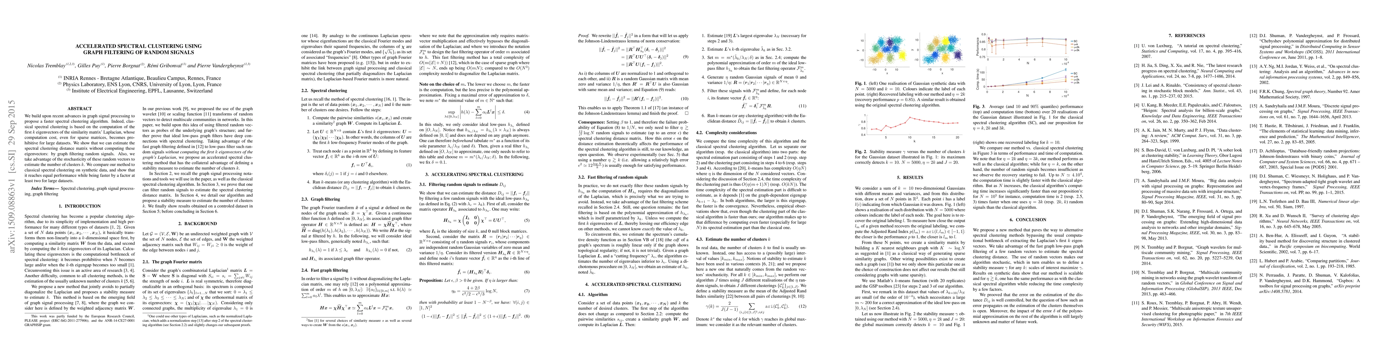 Researchers developed a faster spectral clustering algorithm using graph filtering of random signals, achieving equal performance to classical methods while reducing computation time by at least two factors.