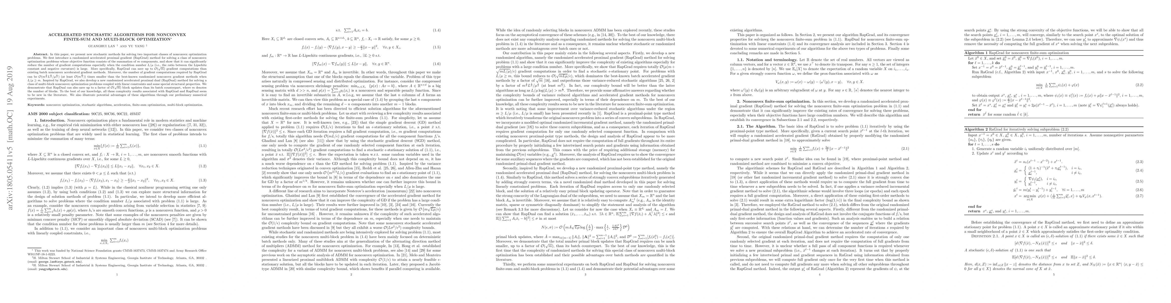 This paper introduces new stochastic methods, RapGrad and RapDual, for solving nonconvex optimization problems. RapGrad reduces gradient computations by up to ${\cal O}(\sqrt{m})$ compared to existing methods, especially when the condition number is large. RapDual similarly reduces projection subproblems for multi-block optimization problems. Both methods offer significant computational savings and are supported by preliminary numerical experiments.