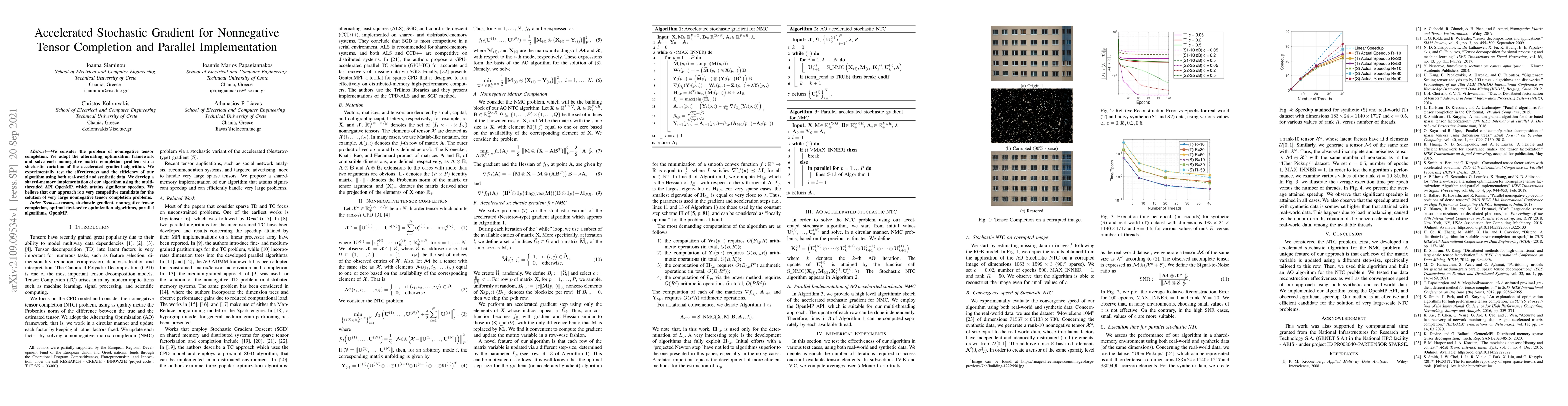 The research adopts an alternating least squares (ALS) framework, solving each nonnegative matrix completion problem via a stochastic variation of the accelerated gradient algorithm. The algorithm is implemented using the multi-threaded API OpenMP for shared-memory systems.