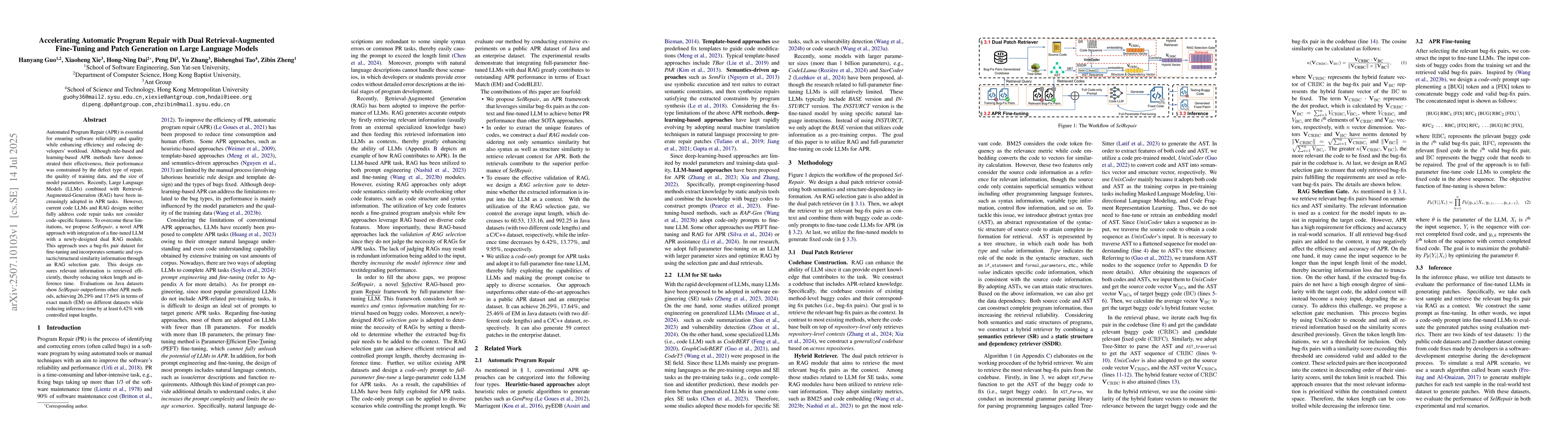 The research introduces SelRepair, an Automatic Program Repair method using a fine-tuned Large Language Model and a dual Retrieval-Augmented-Generation module. It outperforms existing methods, achieving higher exact match scores and reducing inference time on Java datasets.