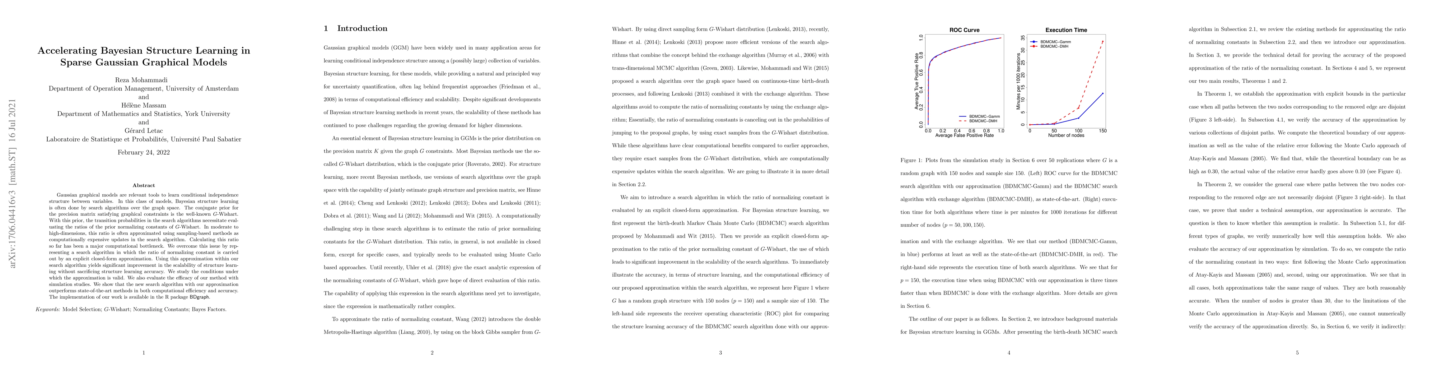 This paper proposes a new search algorithm for Bayesian structure learning in sparse Gaussian graphical models, using a closed-form approximation to replace computationally expensive sampling-based methods for evaluating G-Wishart prior ratios. The method significantly improves scalability and maintains accuracy, outperforming existing techniques in simulations.