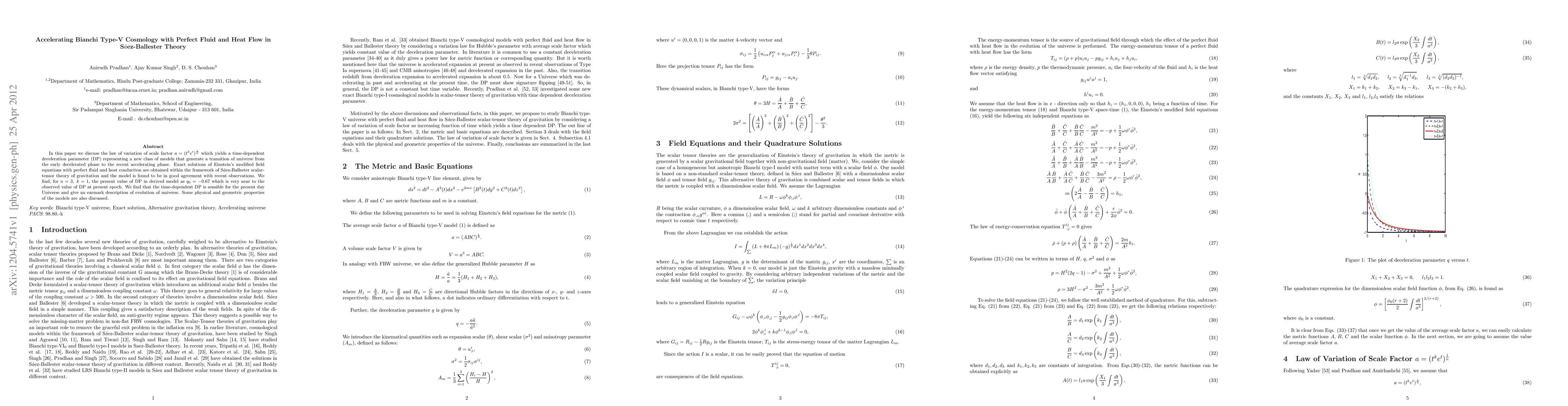 This paper explores a time-dependent deceleration parameter in a Bianchi Type-V cosmology model using perfect fluid and heat flow within the Saez-Ballester scalar-tensor theory, showing a transition from deceleration to acceleration. The derived model aligns well with current observations, particularly with a present-day deceleration parameter close to the observed value.
