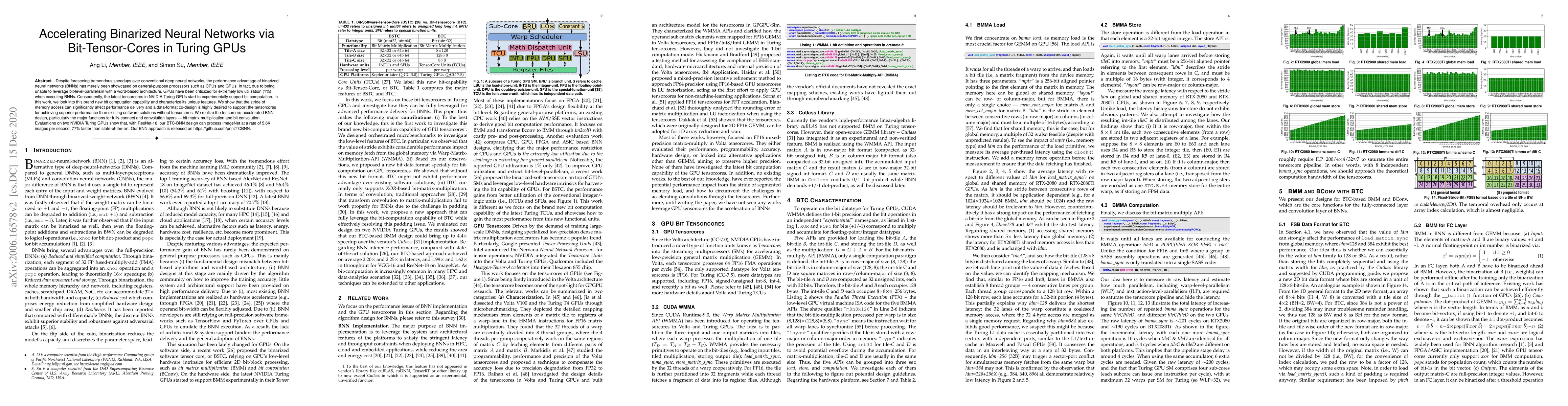 This paper explores leveraging bit-tensor-cores in Turing GPUs to accelerate binarized neural networks (BNNs), addressing the low utilization issue of GPUs in executing BNNs. The study demonstrates that a data-format co-design is crucial for optimal performance, achieving 77% speedup over state-of-the-art methods using ResNet-18 on ImageNet.