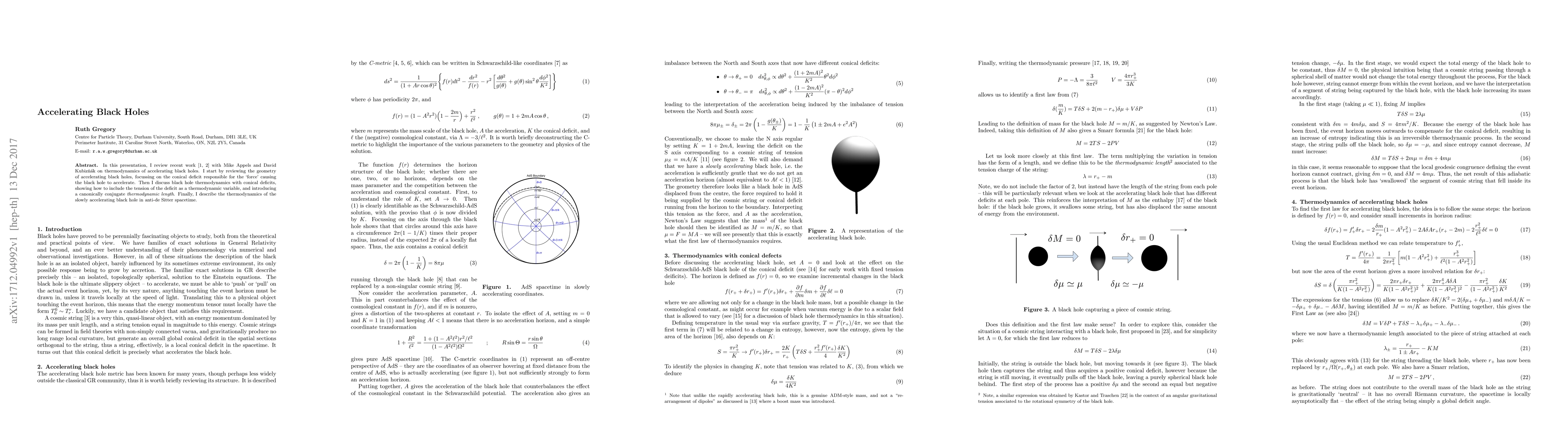 In this presentation, I review recent work with Mike Appels and David Kubiznak on thermodynamics of accelerating black holes. I start by reviewing the geometry of accelerating black holes, focussing on the conical deficit responsible for the 'force' causing the black hole to accelerate. Then I discuss black hole thermodynamics with conical deficits, showing how to include the tension of the deficit as a thermodynamic variable, and introducing a canonically conjugate {\it thermodynamic length}. Finally, I describe the thermodynamics of the slowly accelerating black hole in anti-de Sitter spacetime.