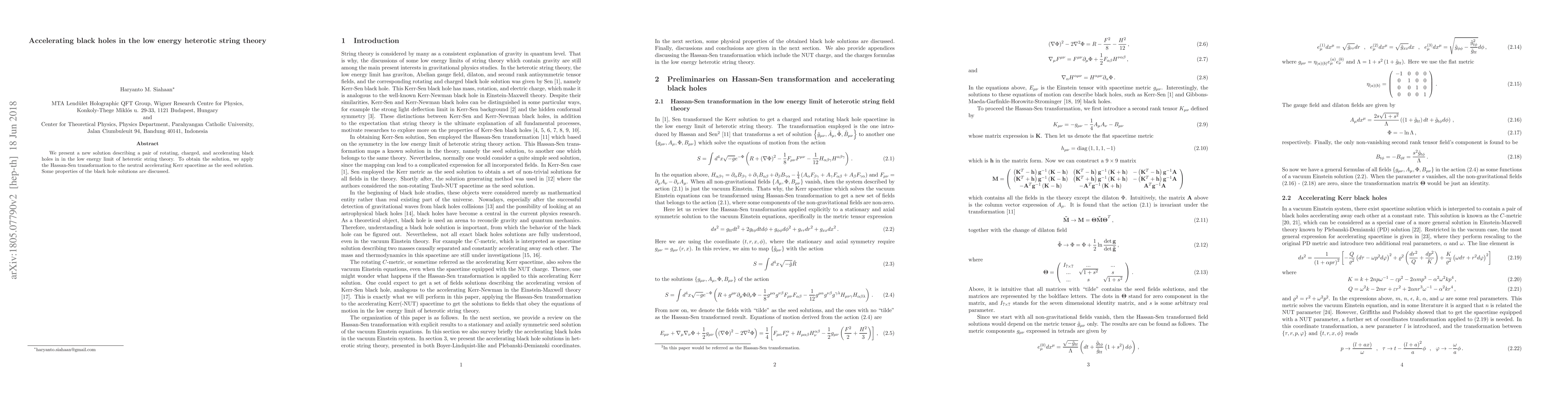 This research introduces a novel solution in low energy heterotic string theory for a pair of rotating, charged, and accelerating black holes, derived via the Hassan-Sen transformation from the neutral accelerating Kerr spacetime. Key properties of these black hole solutions are analyzed.