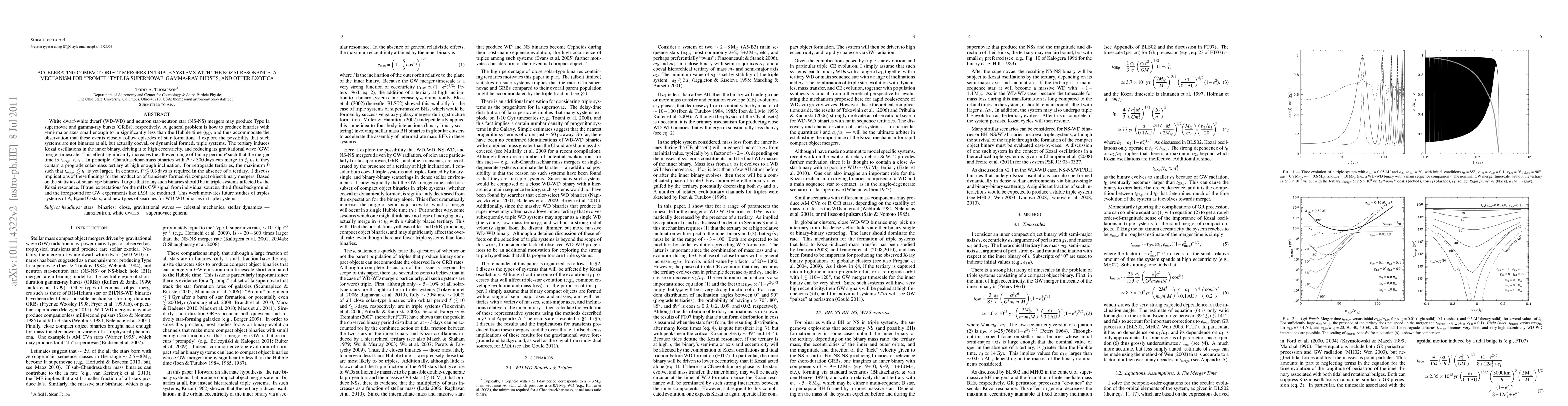 White dwarf-white dwarf (WD-WD) and neutron star-neutron star (NS-NS) mergers may produce Type Ia supernovae and gamma-ray bursts (GRBs), respectively. A general problem is how to produce binaries with semi-major axes small enough to in significantly less than the Hubble time (t_H), and thus accommodate the observation that these events closely follow episodes of star formation. I explore the possibility that such systems are not binaries at all, but actually coeval, or dynamical formed, triple systems. The tertiary induces Kozai oscillations in the inner binary, driving it to high eccentricity, and reducing its gravitational wave (GW) merger timescale. This effect significantly increases the allowed range of binary period P such that the merger time is t_merge < t_H. In principle, Chandrasekhar-mass binaries with P ~ 300 days can merge in < t_H if they contain a prograde solar-mass tertiary at high enough inclination. For retrograde tertiaries, the maximum P such that t_merge < t_H is yet larger. In contrast, P < 0.3 days is required in the absence of a tertiary. I discuss implications of these findings for the production of transients formed via compact object binary mergers. Based on the statistics of solar-type binaries, I argue that many such binaries should be in triple systems affected by the Kozai resonance. If true, expectations for the mHz GW signal from individual sources, the diffuse background, and the foreground for GW experiments like LISA are modified. This work motivates future studies of triples systems of A, B,and O stars, and new types of searches for WD-WD binaries in triple systems.