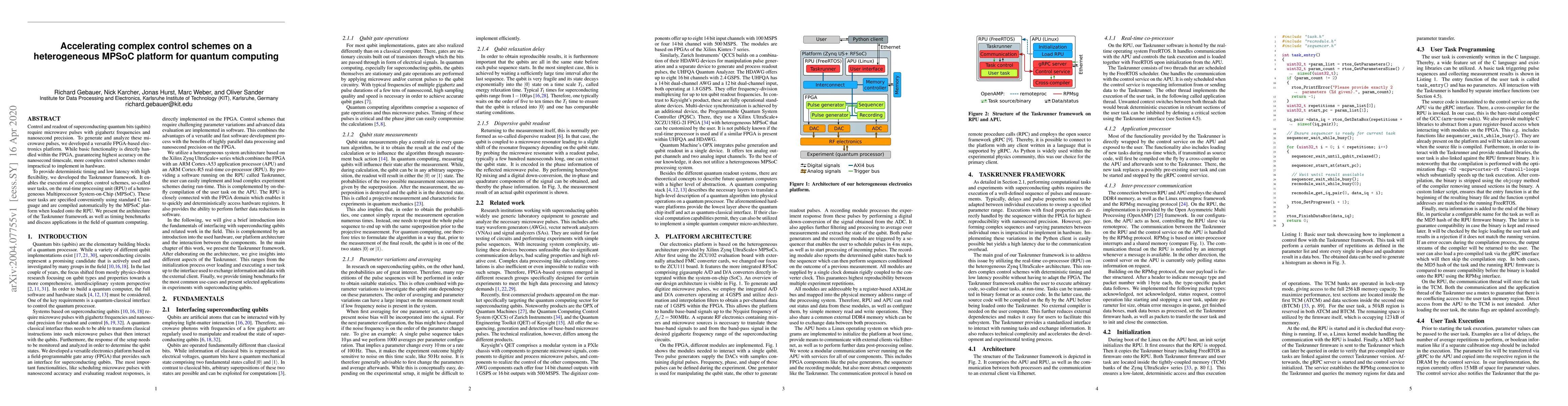 Control and readout of superconducting quantum bits (qubits) require microwave pulses with gigahertz frequencies and nanosecond precision. To generate and analyze these microwave pulses, we developed a versatile FPGA-based electronics platform. While basic functionality is directly handled within the FPGA, guaranteeing highest accuracy on the nanosecond timescale, more complex control schemes render impractical to implement in hardware. To provide deterministic timing and low latency with high flexibility, we developed the Taskrunner framework. It enables the execution of complex control schemes, so-called user tasks, on the real-time processing unit (RPU) of a heterogeneous Multiprocessor System-on-Chip (MPSoC). These user tasks are specified conveniently using standard C language and are compiled automatically by the MPSoC platform when loaded onto the RPU. We present the architecture of the Taskrunner framework as well as timing benchmarks and discuss applications in the field of quantum computing.