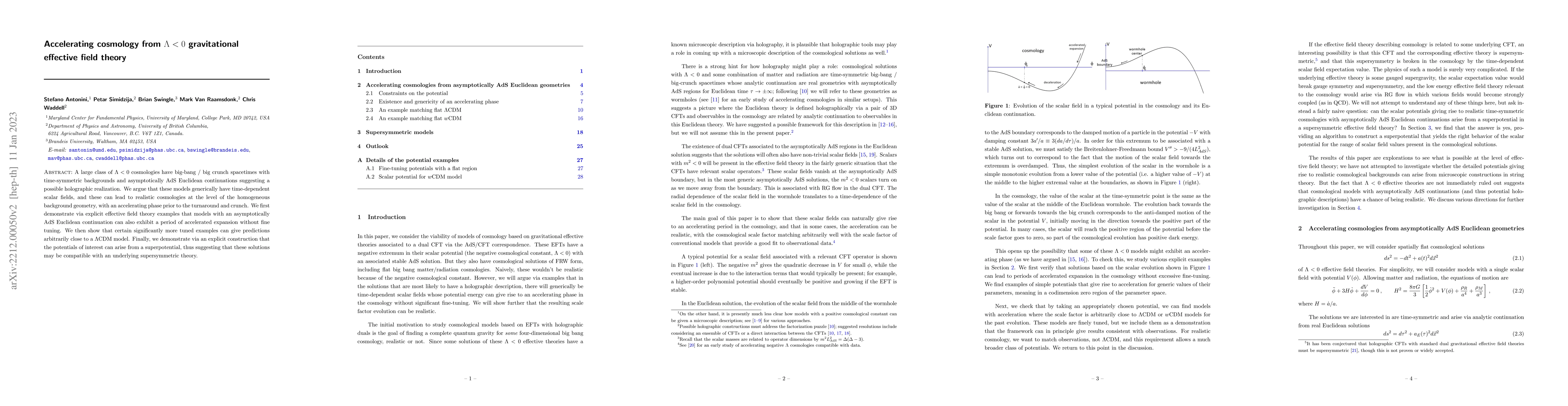A large class of $\Lambda < 0$ cosmologies have big-bang / big crunch spacetimes with time-symmetric backgrounds and asymptotically AdS Euclidean continuations suggesting a possible holographic realization. We argue that these models generically have time-dependent scalar fields, and these can lead to realistic cosmologies at the level of the homogeneous background geometry, with an accelerating phase prior to the turnaround and crunch. We first demonstrate via explicit effective field theory examples that models with an asymptotically AdS Euclidean continuation can also exhibit a period of accelerated expansion without fine tuning. We then show that certain significantly more tuned examples can give predictions arbitrarily close to a $\Lambda$CDM model. Finally, we demonstrate via an explicit construction that the potentials of interest can arise from a superpotential, thus suggesting that these solutions may be compatible with an underlying supersymmetric theory.