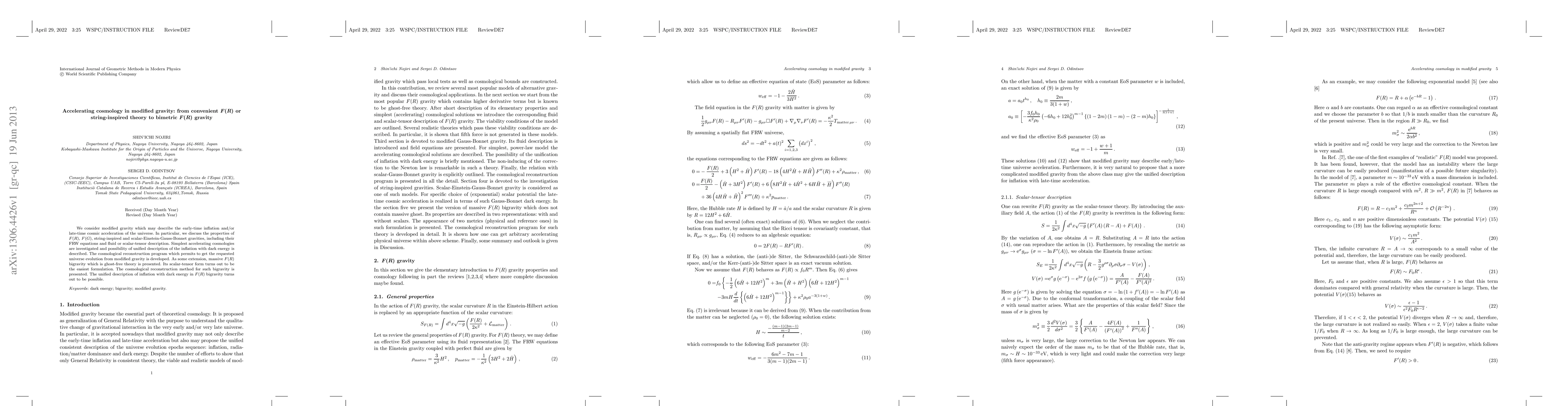 This paper explores various modified gravity theories, including $F(R)$, $F(G)$, and bimetric $F(R)$ gravity, focusing on their potential to describe both early-time inflation and late-time cosmic acceleration. It develops a cosmological reconstruction method for these theories and demonstrates the possibility of a unified description of inflation and dark energy in $F(R)$ bigravity.