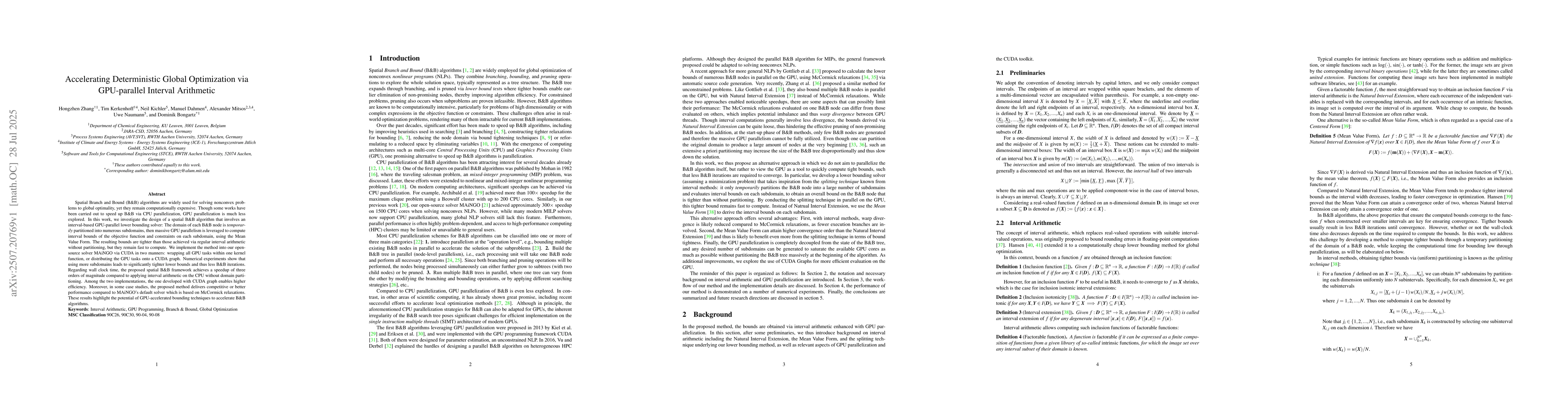 This research highlights the potential of GPU-accelerated bounding techniques to significantly speed up B&B algorithms for global optimization, offering a practical approach for handling computationally expensive nonconvex problems.