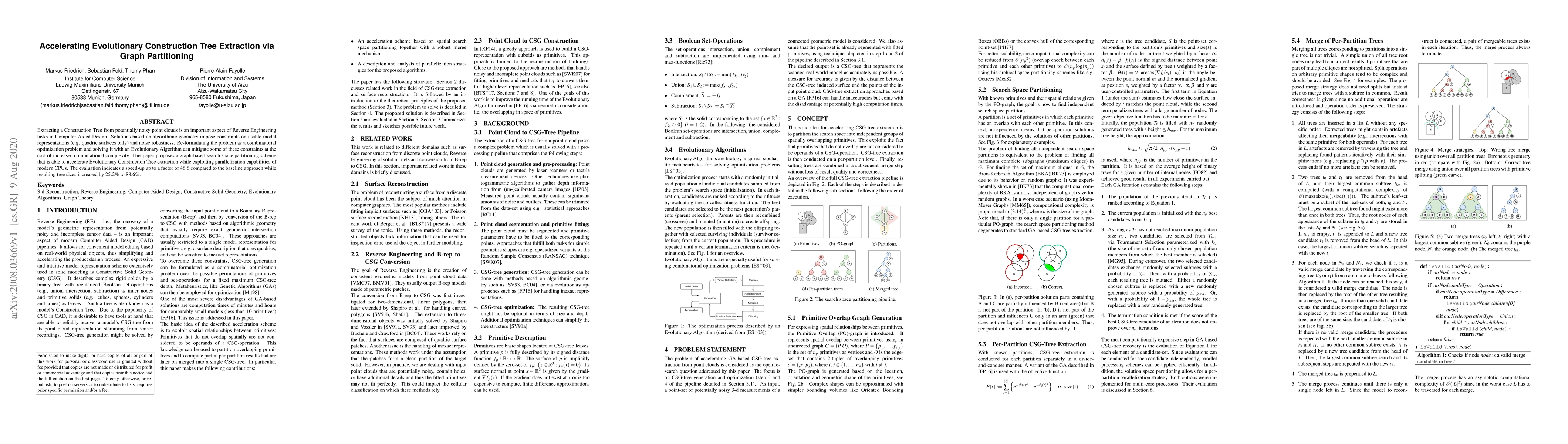 Extracting a Construction Tree from potentially noisy point clouds is an important aspect of Reverse Engineering tasks in Computer Aided Design. Solutions based on algorithmic geometry impose constraints on usable model representations (e.g. quadric surfaces only) and noise robustness. Re-formulating the problem as a combinatorial optimization problem and solving it with an Evolutionary Algorithm can mitigate some of these constraints at the cost of increased computational complexity. This paper proposes a graph-based search space partitioning scheme that is able to accelerate Evolutionary Construction Tree extraction while exploiting parallelization capabilities of modern CPUs. The evaluation indicates a speed-up up to a factor of $46.6$ compared to the baseline approach while resulting tree sizes increased by $25.2\%$ to $88.6\%$.