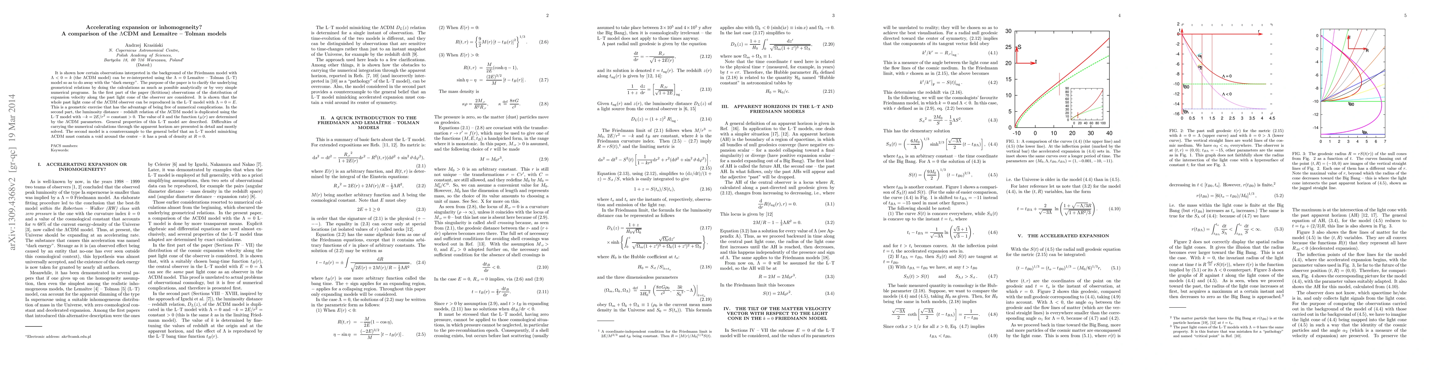 It is shown how certain observations interpreted in the background of the Friedmann model with $\Lambda < 0 = k$ (the $\Lambda$CDM model) can be re-interpreted using the $\Lambda = 0$ Lema\^{\i}tre - Tolman (L-T) model so as to do away with the "dark energy". The purpose of the paper is to clarify the underlying geometrical relations by doing the calculations as much as possible analytically or by very simple numerical programs. In the first part of the paper (fictitious) observations of the distribution of expansion velocity along the past light cone of the observer are considered. It is shown that the whole past light cone of the $\Lambda$CDM observer can be reproduced in the L-T model with $\Lambda = 0 = E$. This is a geometric exercise that has the advantage of being free of numerical complications. In the second part, the luminosity distance - redshift relation of the $\Lambda$CDM model is duplicated using the L-T model with $-k = 2E/r^2 =$ constant $> 0$. The value of $k$ and the function $t_B(r)$ are determined by the $\Lambda$CDM parameters. General properties of this L-T model are described. Difficulties of carrying the numerical calculations through the apparent horizon are presented in detail and mostly solved. The second model is a counterexample to the claim that an L-T model mimicking $\Lambda$CDM must contain a void around the center - it has a peak of density at $R = 0$.