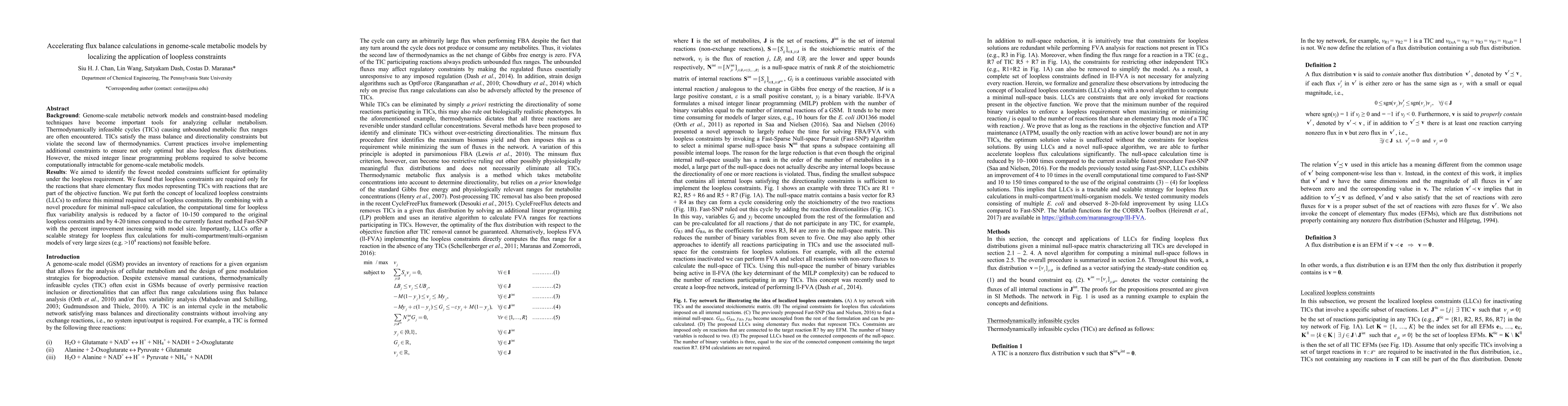 This paper proposes localized loopless constraints (LLCs) to minimize the computational burden of enforcing loopless flux distributions in genome-scale metabolic models, significantly reducing computational time by 10-150 times compared to existing methods, and enabling scalable flux calculations for large multi-compartment/multi-organism models.