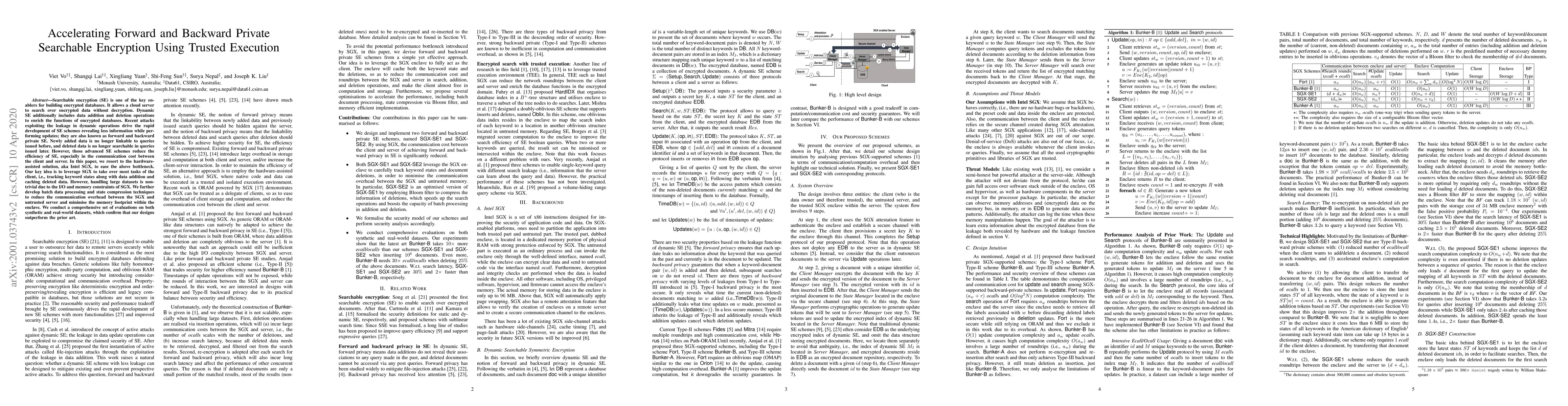 This paper proposes a hardware-assisted solution using Intel SGX to enhance the efficiency of forward and backward private searchable encryption, addressing the communication cost and memory constraints. By leveraging SGX for client-side tasks and introducing batch processing and state compression, the scheme significantly outperforms existing methods.