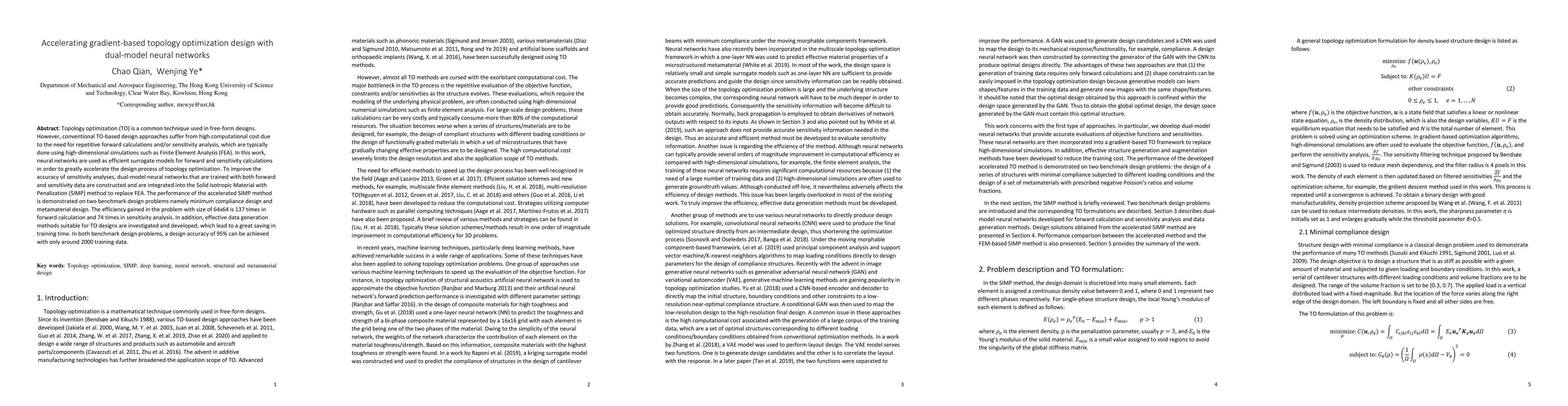 This research paper introduces a dual-model neural network approach to accelerate topology optimization design, achieving 137x speedup in forward calculations and 74x speedup in sensitivity analysis.