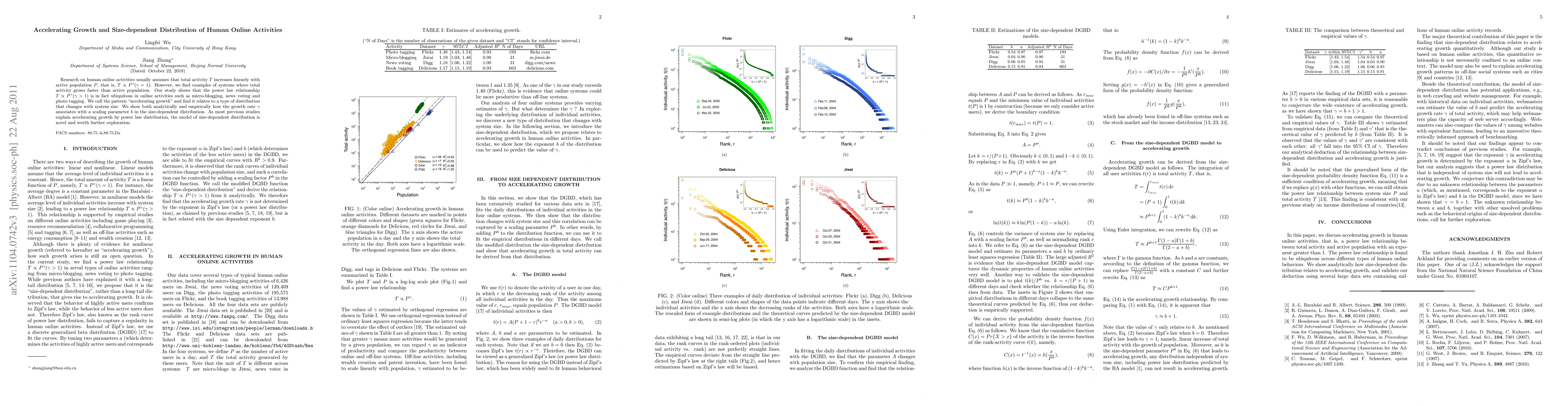 This study reveals that online activities like micro-blogging and news voting exhibit accelerating growth patterns where total activity increases faster than the active population. It proposes a size-dependent distribution model to explain this phenomenon.