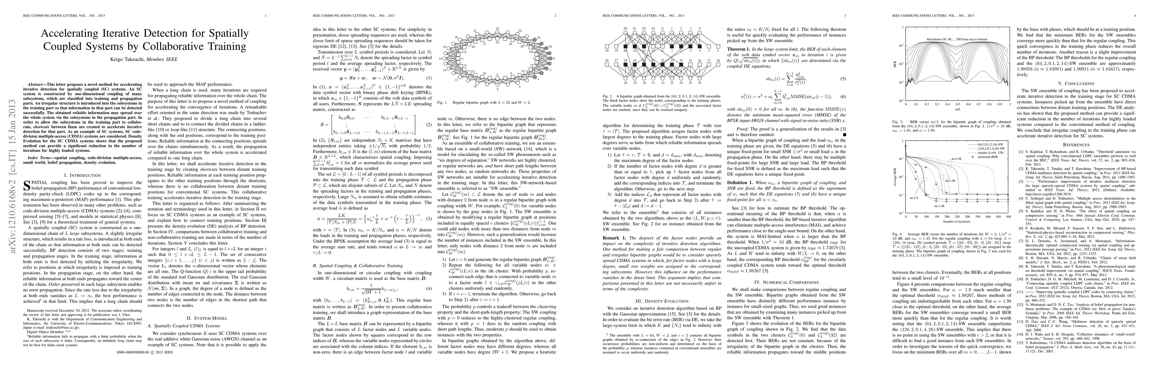This research introduces a new method to speed up iterative detection in spatially coupled systems using collaborative training. By adding irregular structures to training subsystems and creating shortcuts between them, the method significantly reduces iteration counts in highly loaded systems like SC CDMA, as demonstrated by density evolution analysis.