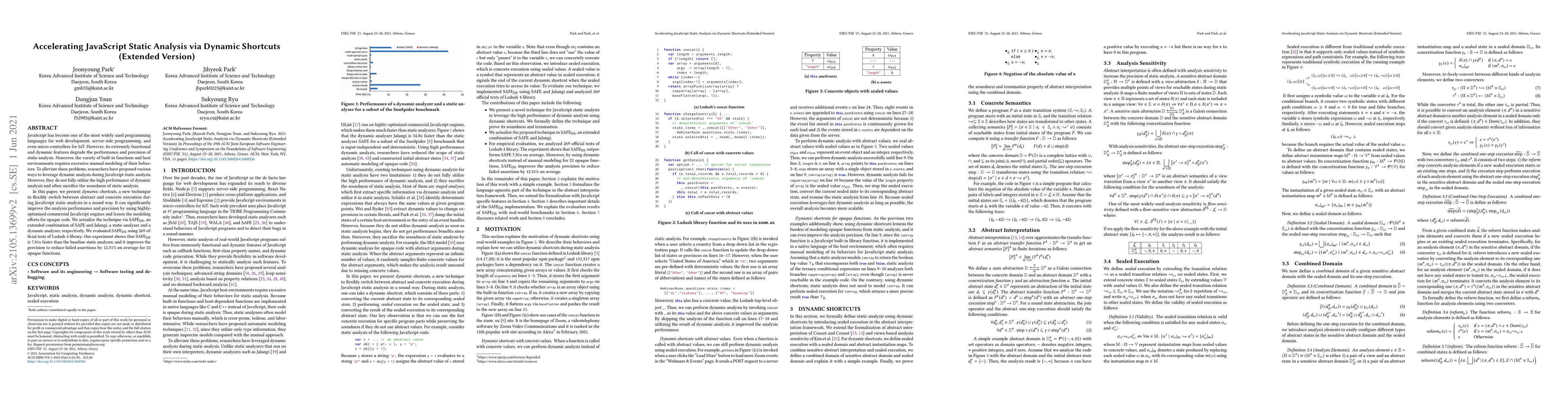 This paper introduces dynamic shortcuts to enhance JavaScript static analysis by switching between abstract and concrete execution, improving both performance and precision. The proposed method, implemented in SAFE_DS, combines SAFE and Jalangi, achieving 7.81x faster analysis and a 12.31% reduction in failed assertions for opaque functions compared to a baseline static analyzer.