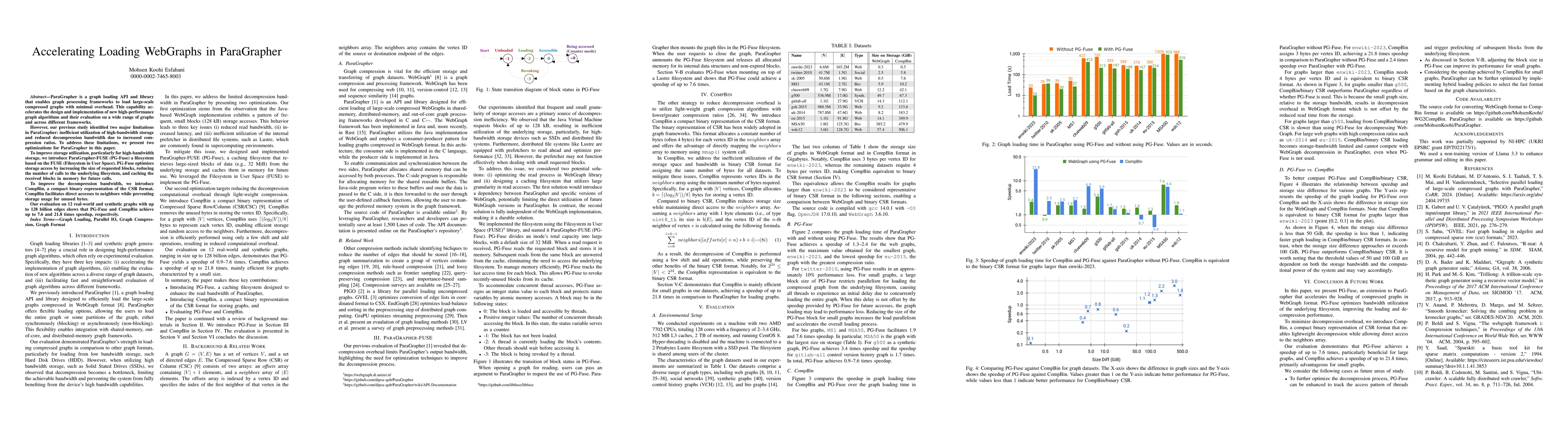 ParaGrapher is a graph loading API and library that enables graph processing frameworks to load large-scale compressed graphs with minimal overhead. This capability accelerates the design and implementation of new high-performance graph algorithms and their evaluation on a wide range of graphs and across different frameworks. However, our previous study identified two major limitations in ParaGrapher: inefficient utilization of high-bandwidth storage and reduced decompression bandwidth due to increased compression ratios. To address these limitations, we present two optimizations for ParaGrapher in this paper. To improve storage utilization, particularly for high-bandwidth storage, we introduce ParaGrapher-FUSE (PG-Fuse) a filesystem based on the FUSE (Filesystem in User Space). PG-Fuse optimizes storage access by increasing the size of requested blocks, reducing the number of calls to the underlying filesystem, and caching the received blocks in memory for future calls. To improve the decompression bandwidth, we introduce CompBin, a compact binary representation of the CSR format. CompBin facilitates direct accesses to neighbors while preventing storage usage for unused bytes. Our evaluation on 12 real-world and synthetic graphs with up to 128 billion edges shows that PG-Fuse and CompBin achieve up to 7.6 and 21.8 times speedup, respectively.