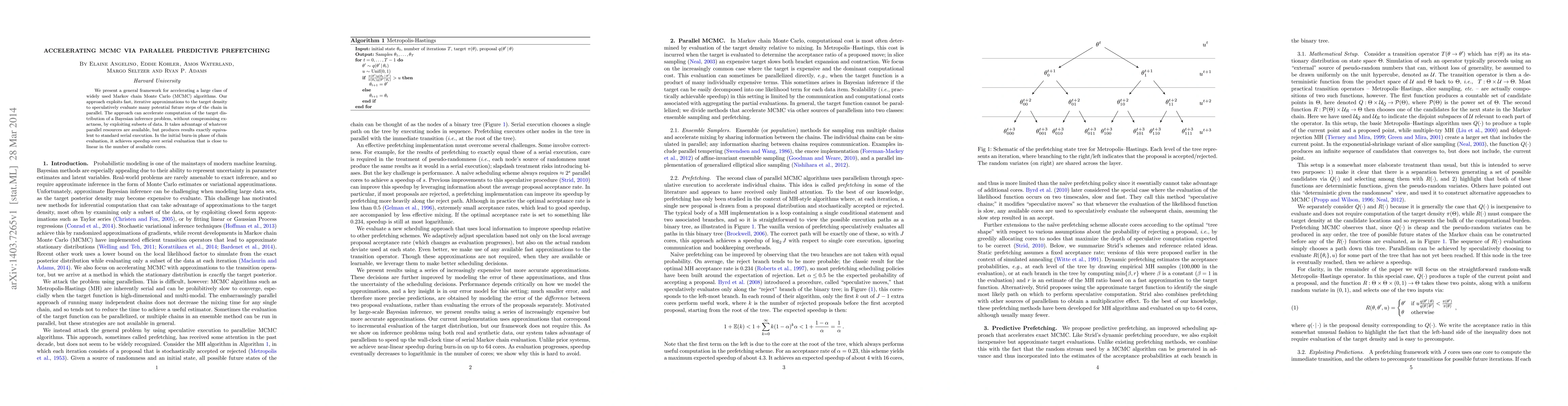 This paper introduces a framework to accelerate MCMC algorithms by parallel predictive prefetching, leveraging parallel computing resources to evaluate potential future steps speculatively. The method achieves near-linear speedup during the initial burn-in phase, maintaining exactness without compromising the results of standard serial execution.